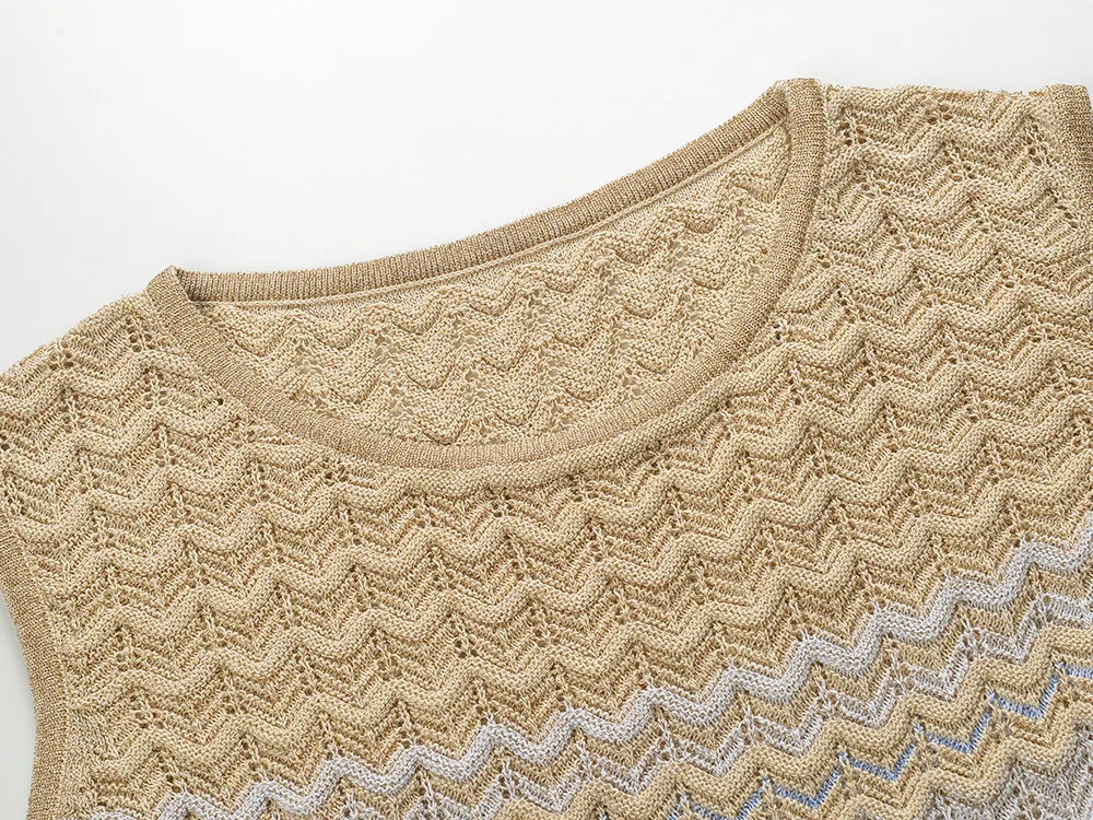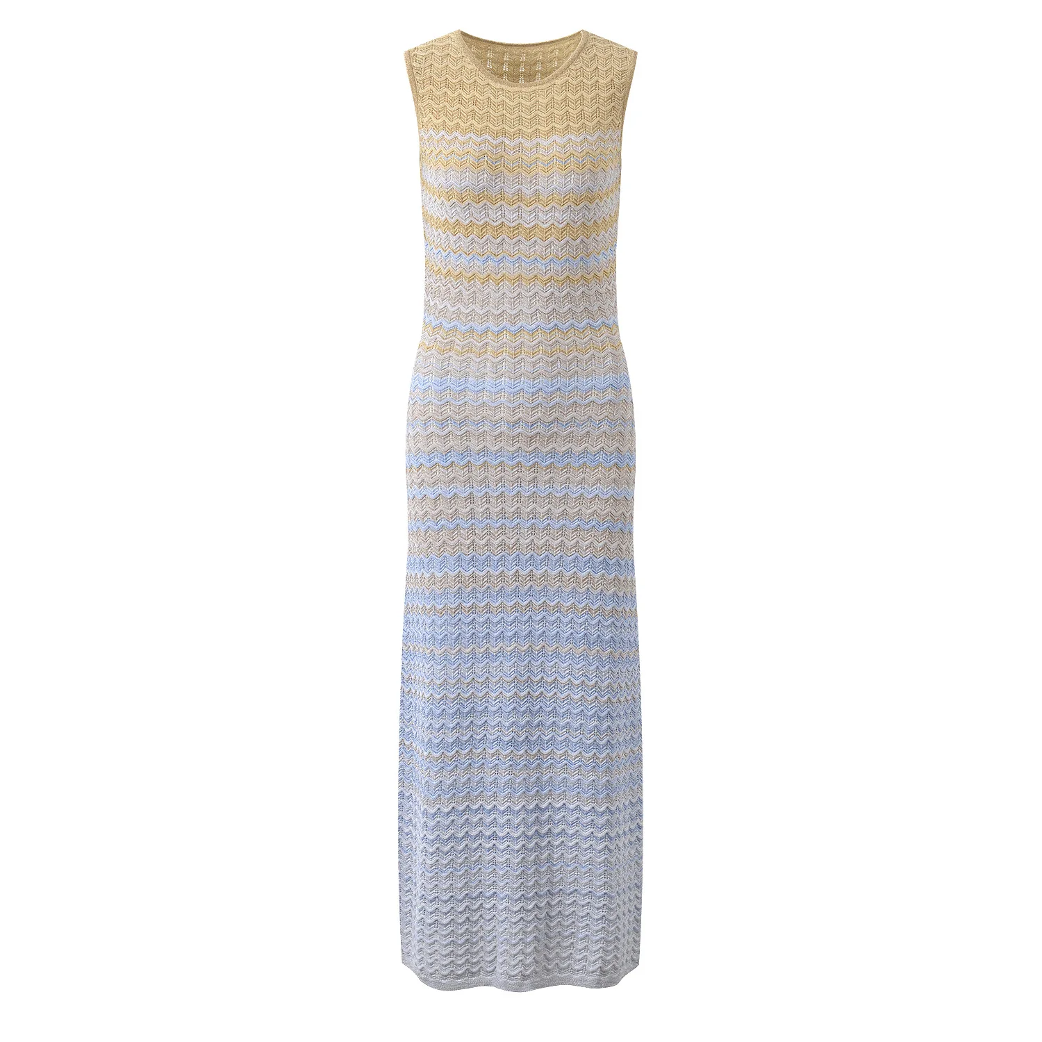 Product Name: 2025 French Sweet Summer Elegant Stretch Slim Round Neck Sleeveless Women’s Dress New Gradient Color Wave Striped Long Dresses