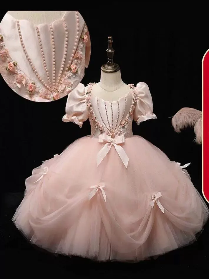 2025 Girls’ Princess Dress, High-end Piano Performance Outfit, Children’s Host Birthday Party Evening Gown