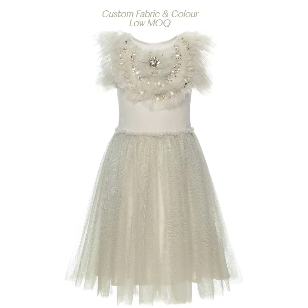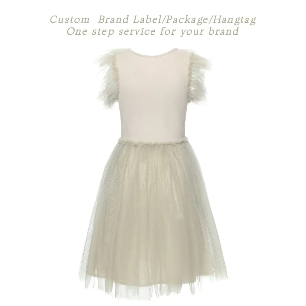 Product Name: 2025 High-End Designer Flying Sleeve Dress for Girls New Kids Fashion Princess Luxury Style Flower Print for Summer