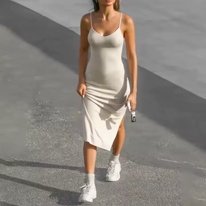 Product Name: 2025 New Arrival Summer Women Midi Dresses Fashion New Halter Solid Color Casual Sun Dress for Woman