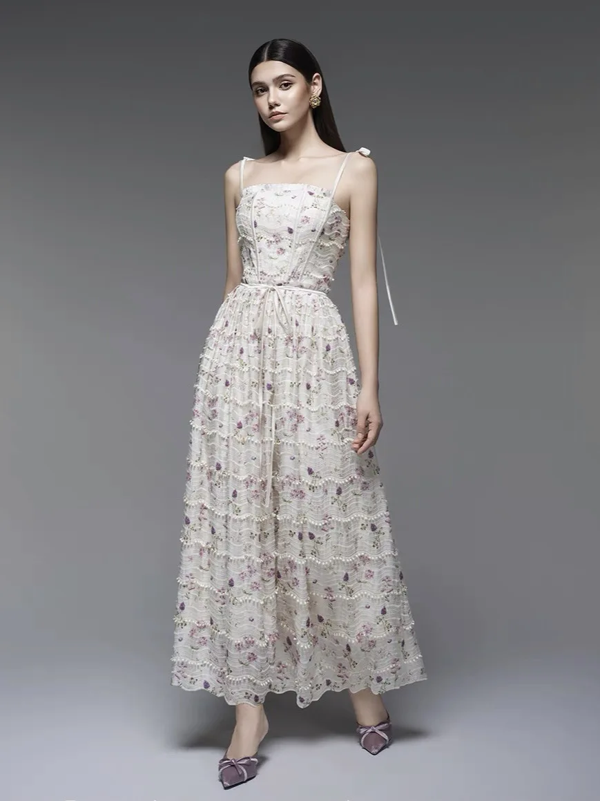 Product Name: 2025 New Design High Quality Elegant Fashion Dress Flower Strap Long Dress Holiday Style Young Women’s Long Dress
