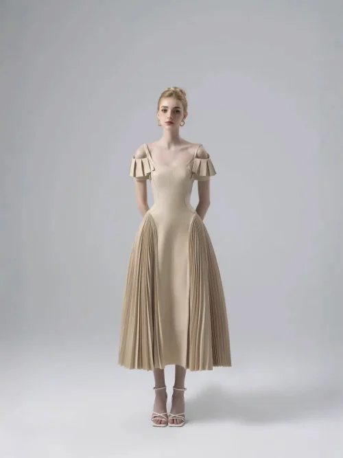 Product Name: 2025 New Fashion Luxury Vietnamese Style High Quality Dress Slim Long Plain Solid Color Short Sleeve Women’s Long Dress