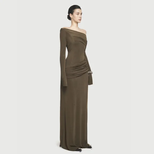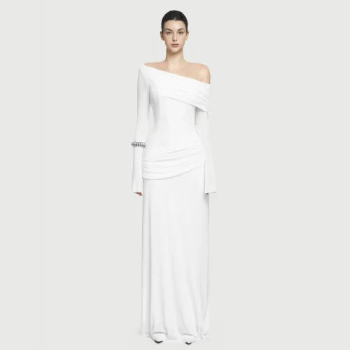 Product Name: 2025 New Fashionable Elegant Long Party Dress One Shoulder Sexy Ruched Bodycon Long Skirt for Women