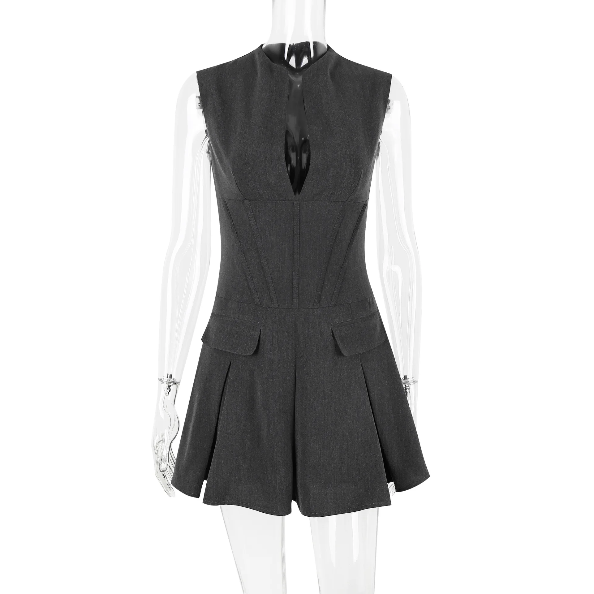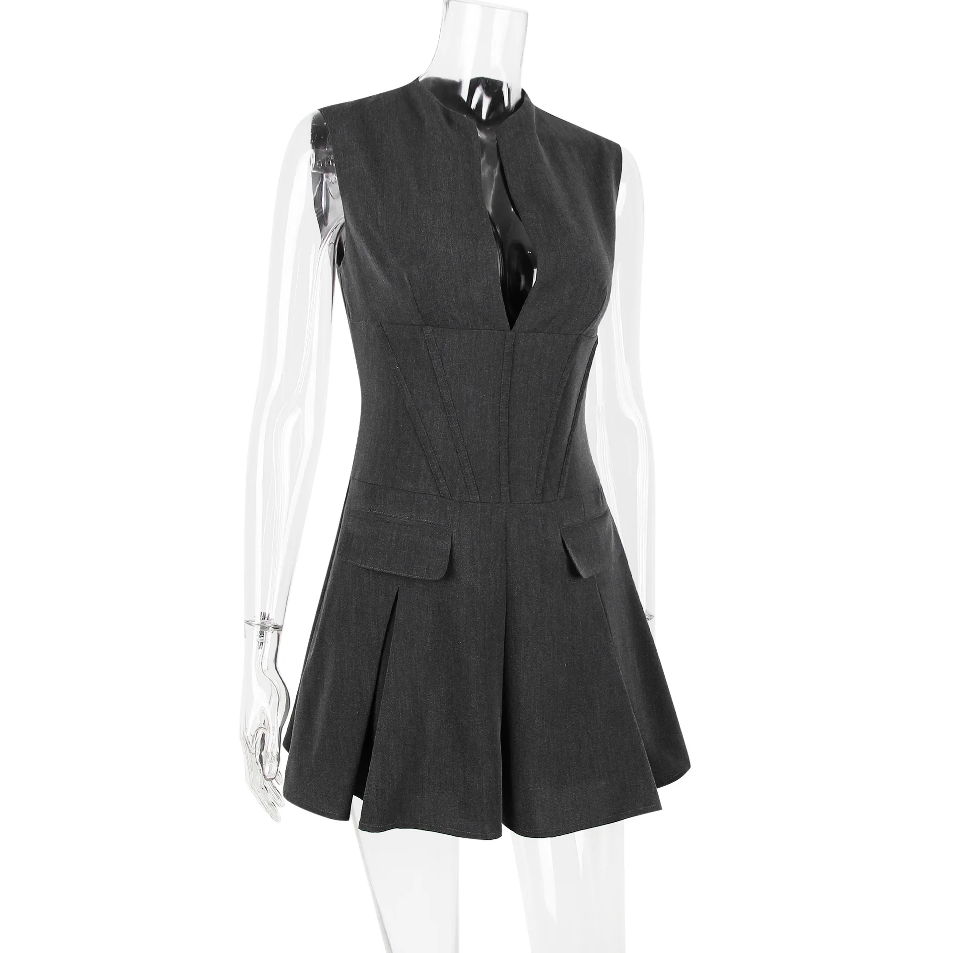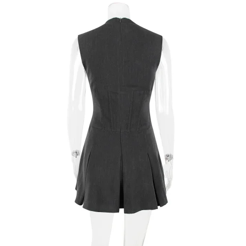 2025 Office Wear Fashion Dress – Sexy V-neck Suit Pleated Skirt – Fishbone Fit Sleeveless Dress