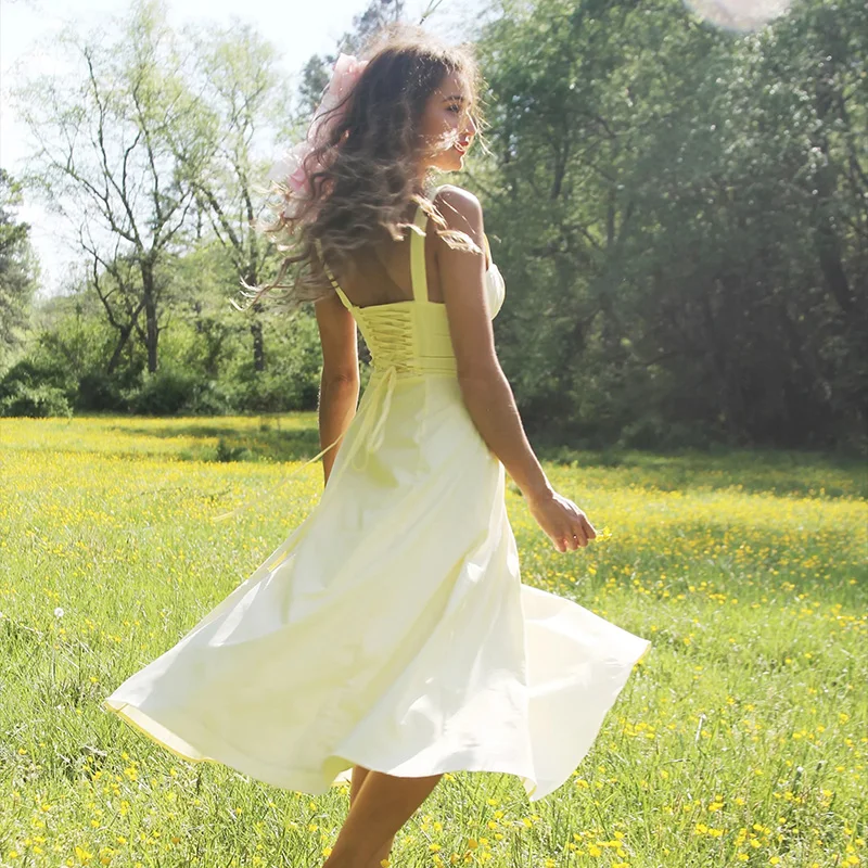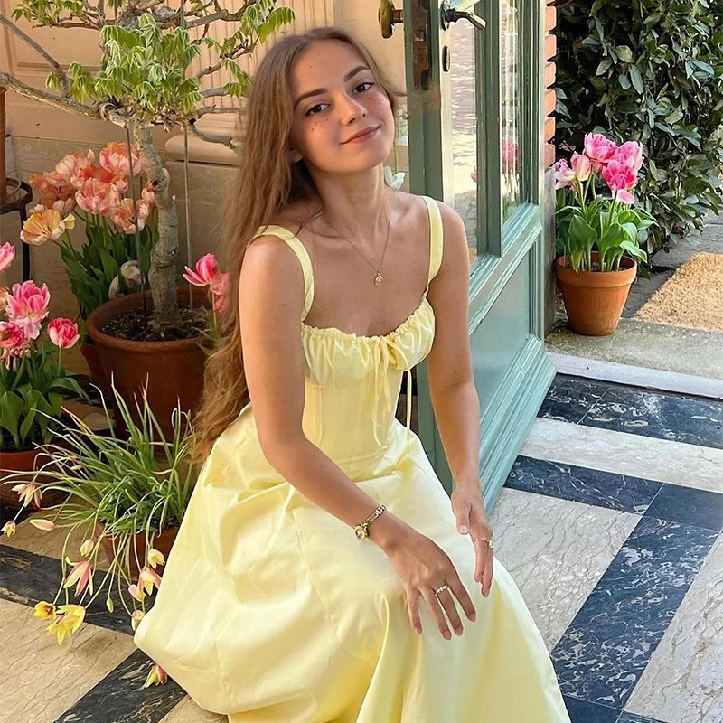 2025 Olaesa New Design Fashion Summer Casual Sleeveless French Vintage Style Spaghetti Strap A-Line Dress