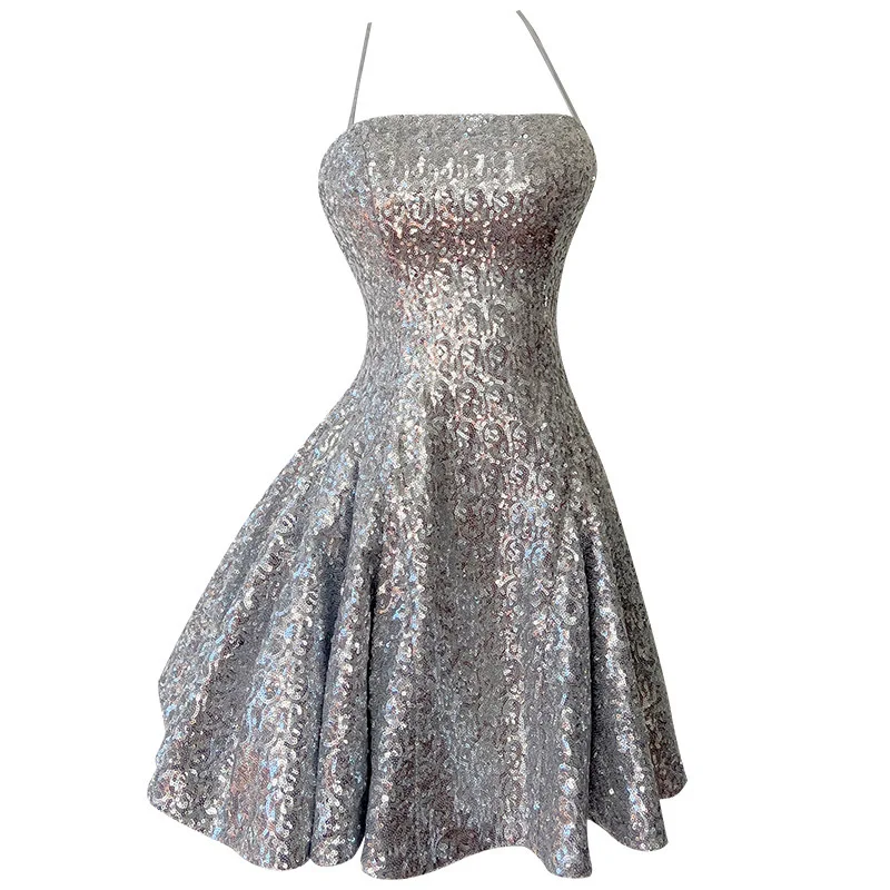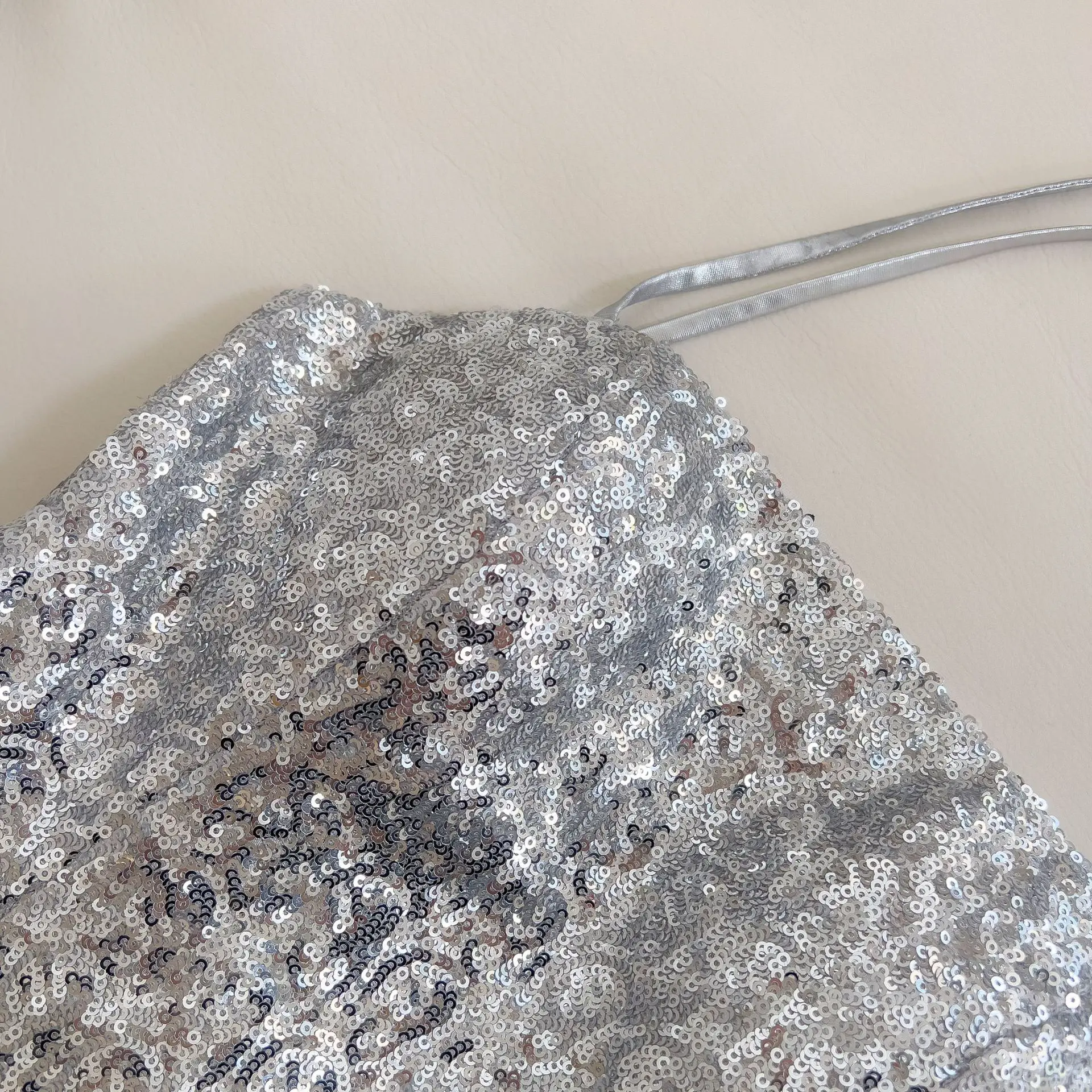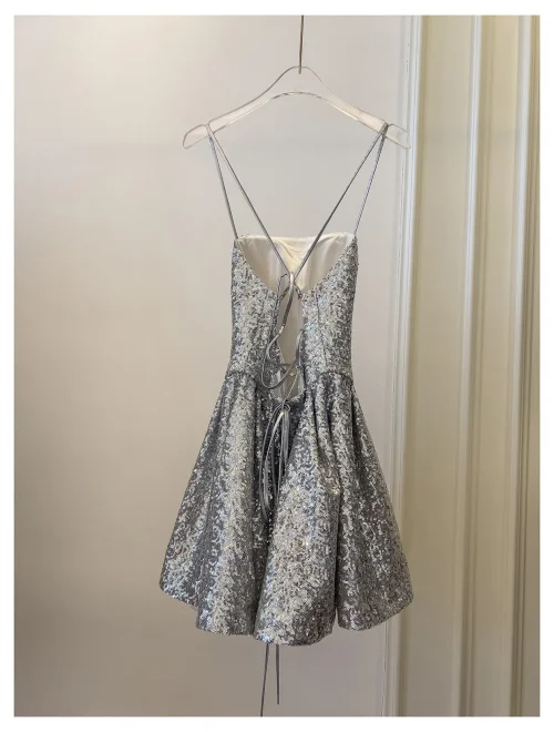 Product Name: 2025 Spring Fashion Elegant Handmade Silver Chiffon Sequin Dress Casual Club Mini Dress