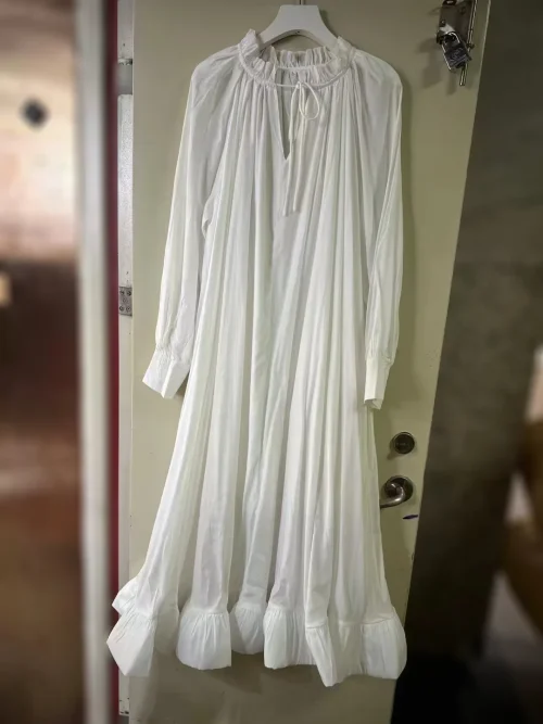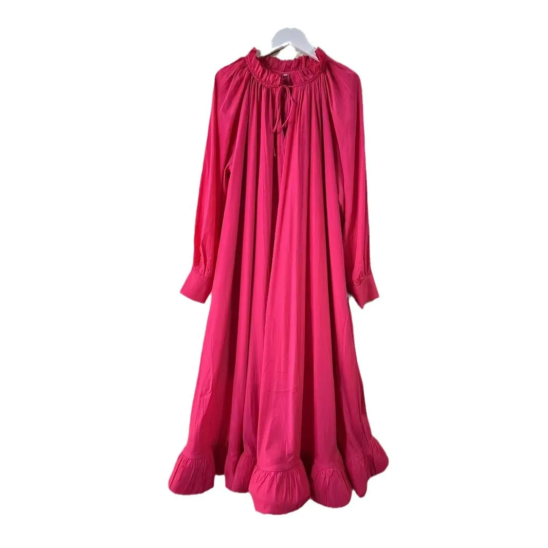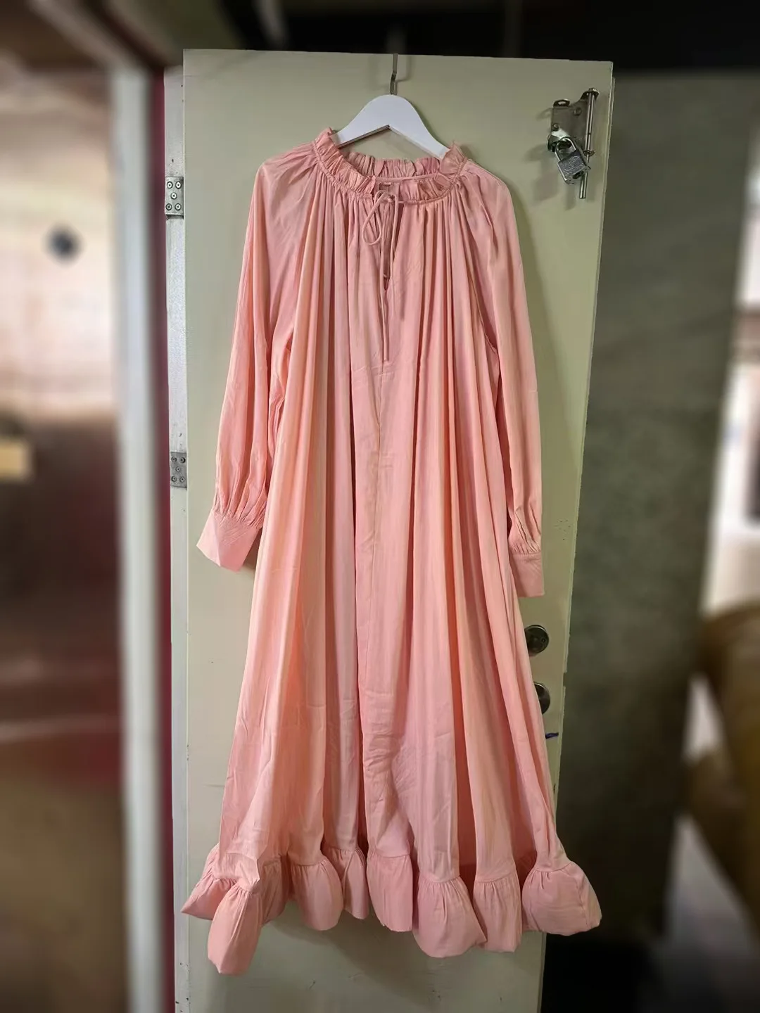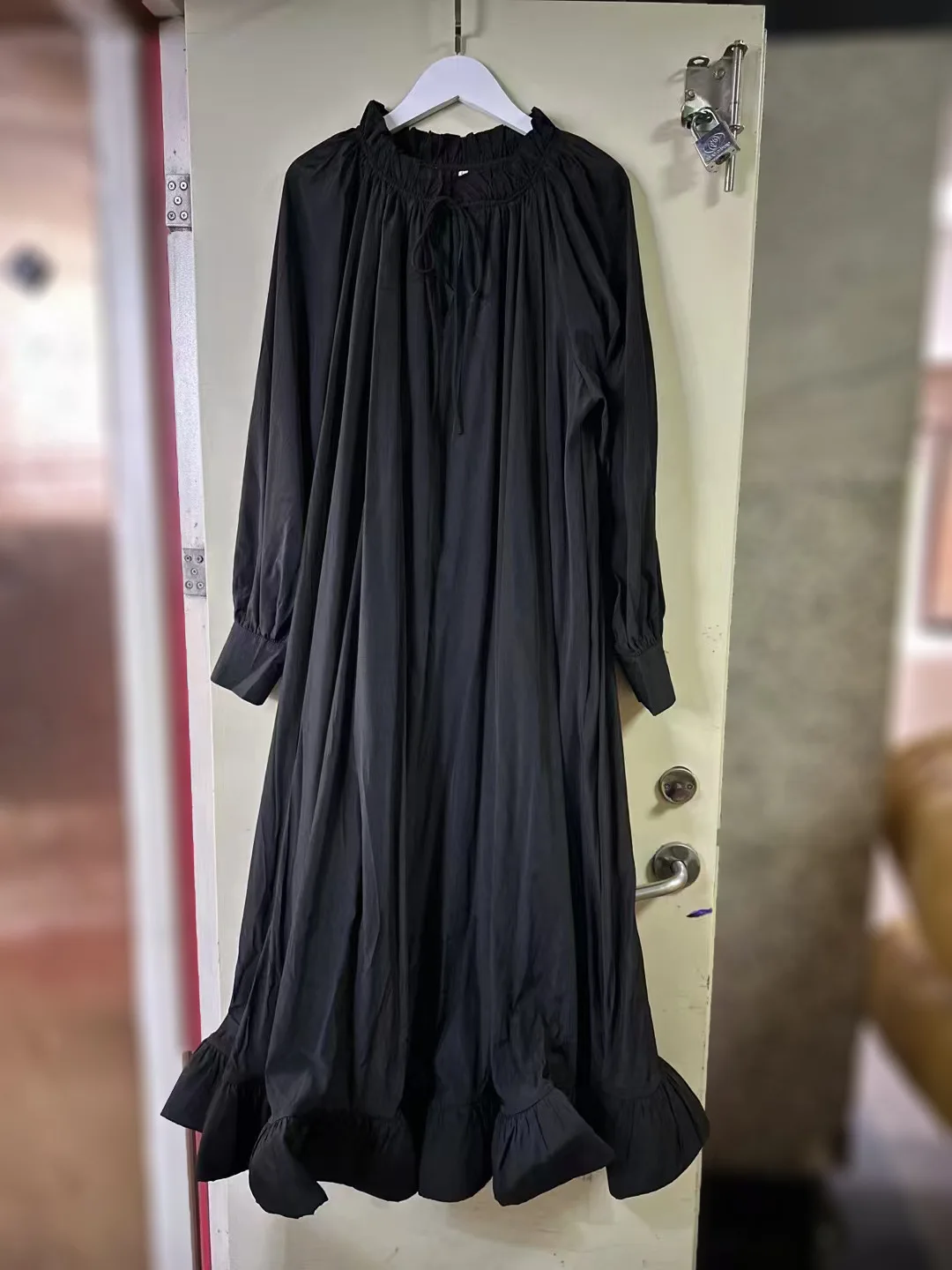 2025 Spring Summer Collection Casual Maxi Dress Large Swing Ruffled Sleeves Neck Ear Edge Strap Drawstring Long-Sleeved Loose