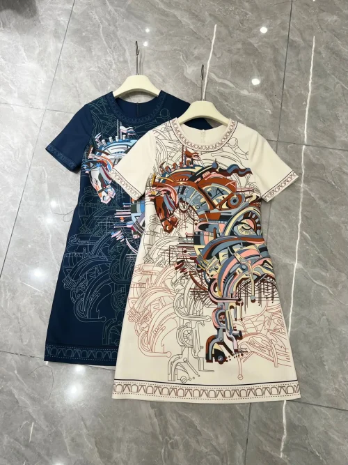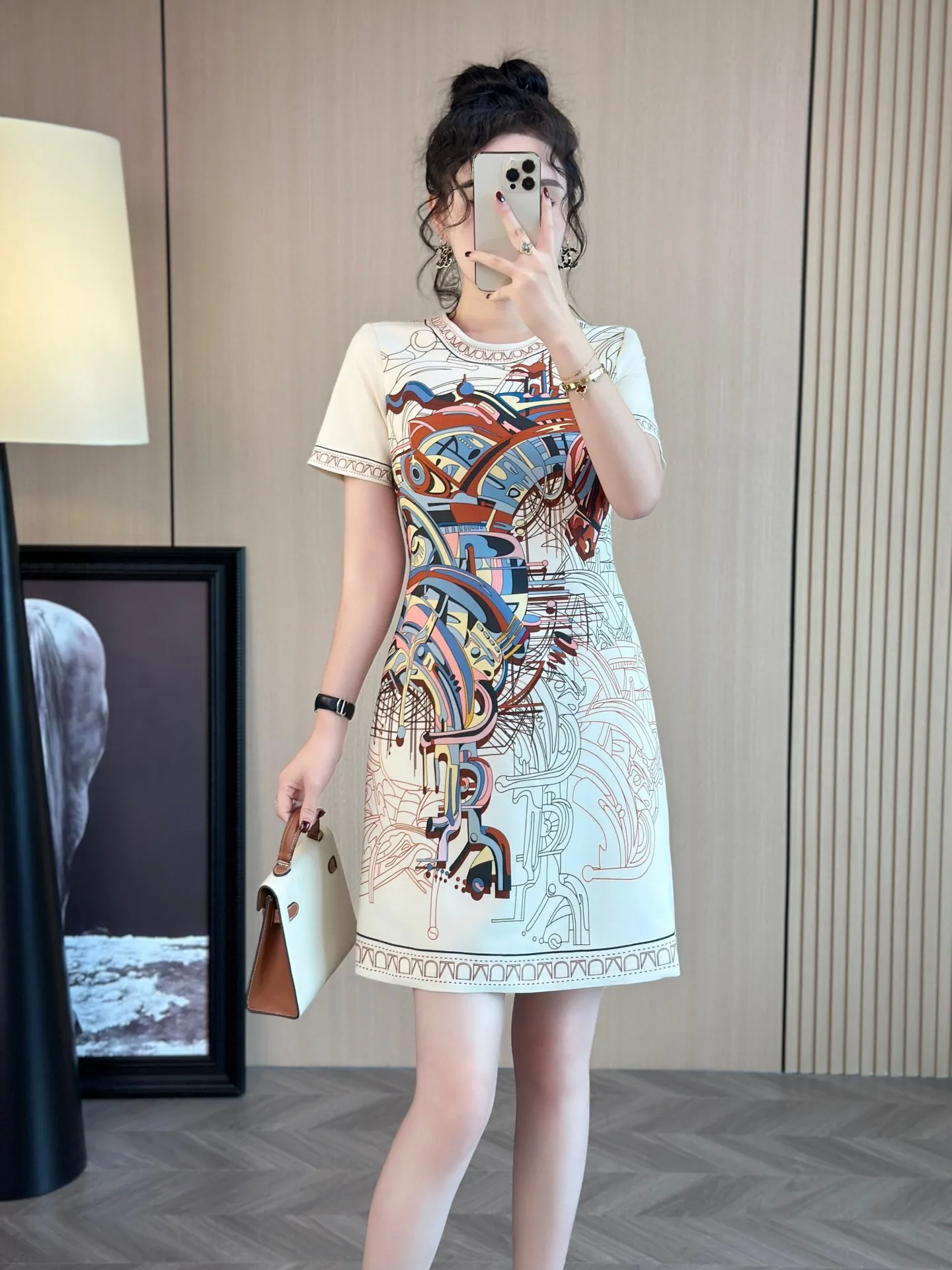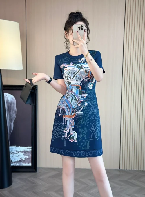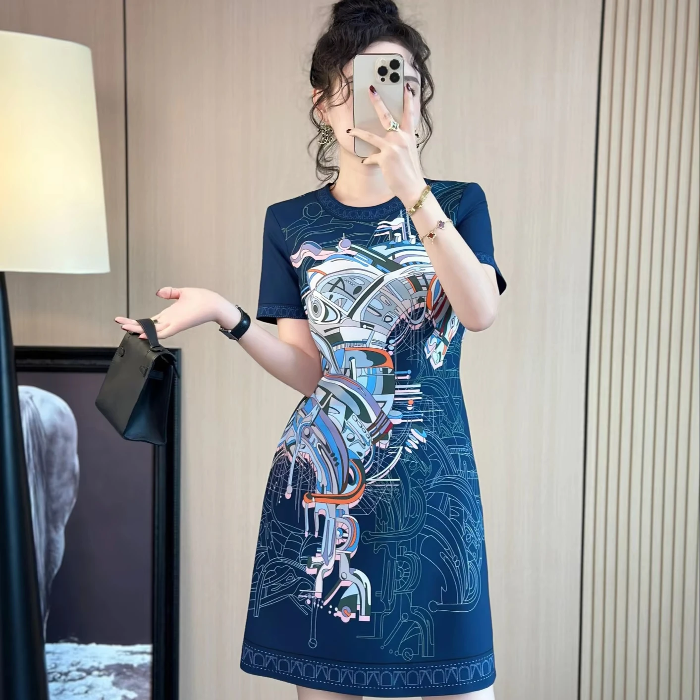 Product Name: 2025 Spring Summer Collection Elegant Vintage Printed French Dress Short-Sleeved Neck Slim-Fit Style Casual
