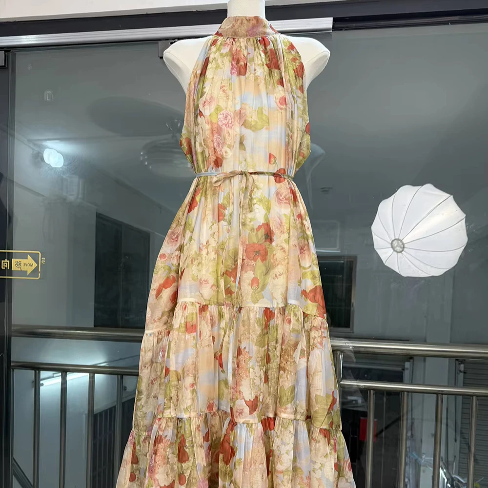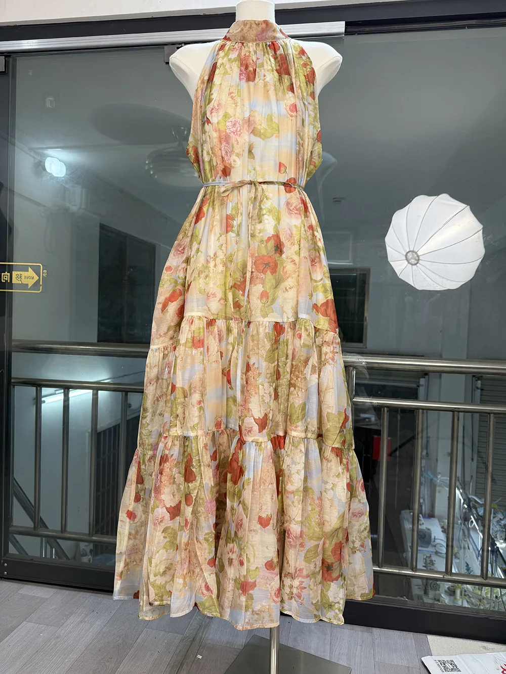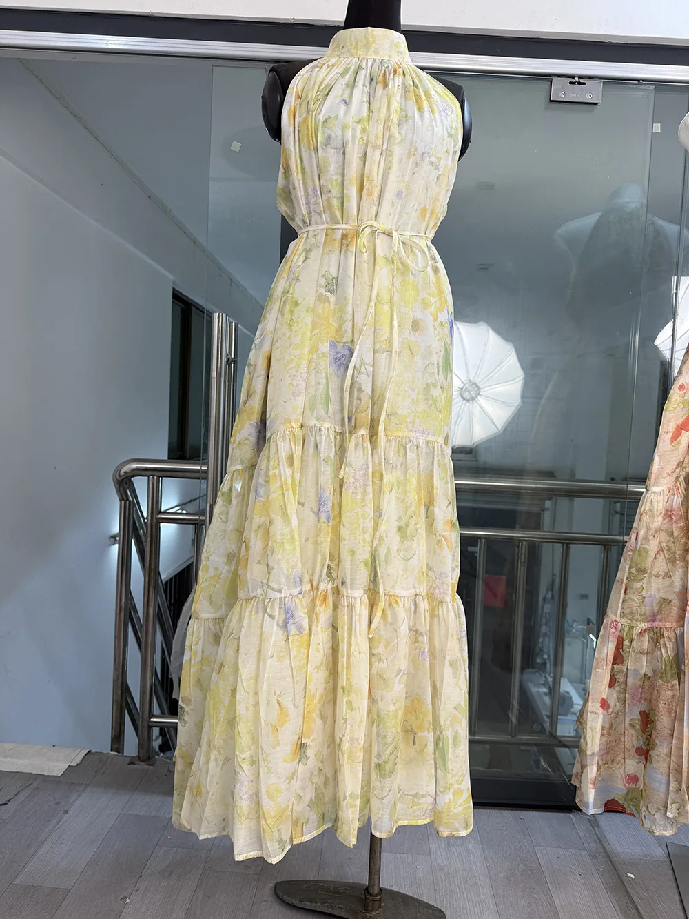 Product Name: 2025 Spring Summer Collection Retro Floral Printed Loose A-Line Long Dress Vessel Neck Shoulder Casual Holiday Outfit