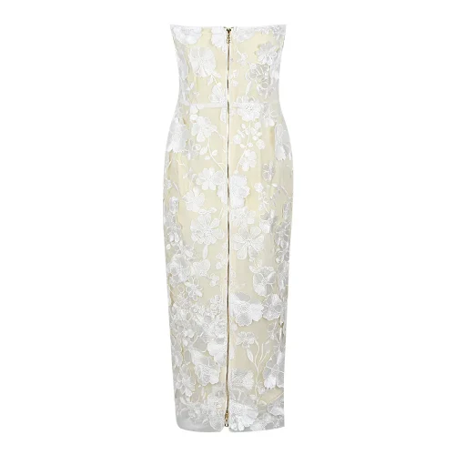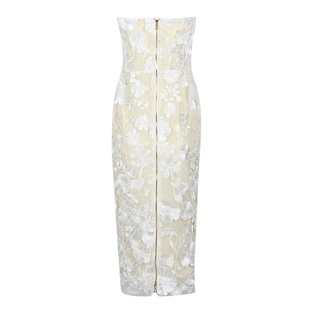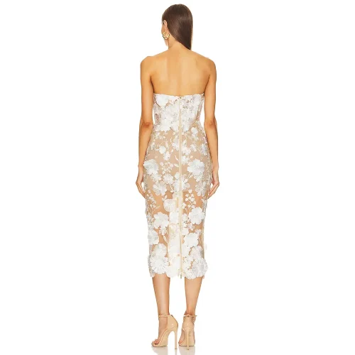 Product Name: 2025 Spring Summer Collection Strapless Maxi Mesh Flower Dress With Elegant Bow Print for Annual Party Catwalk Holiday Pos