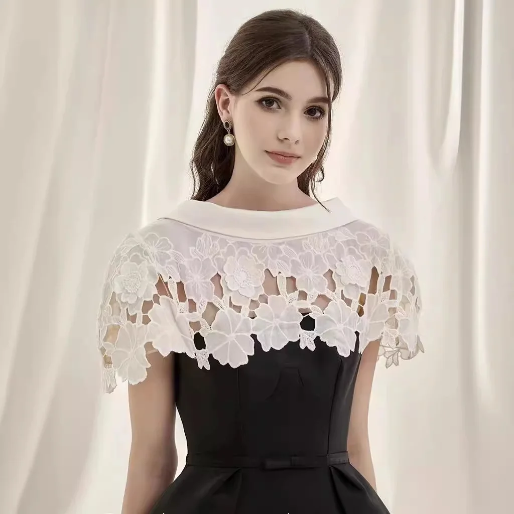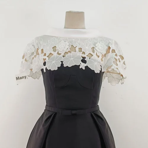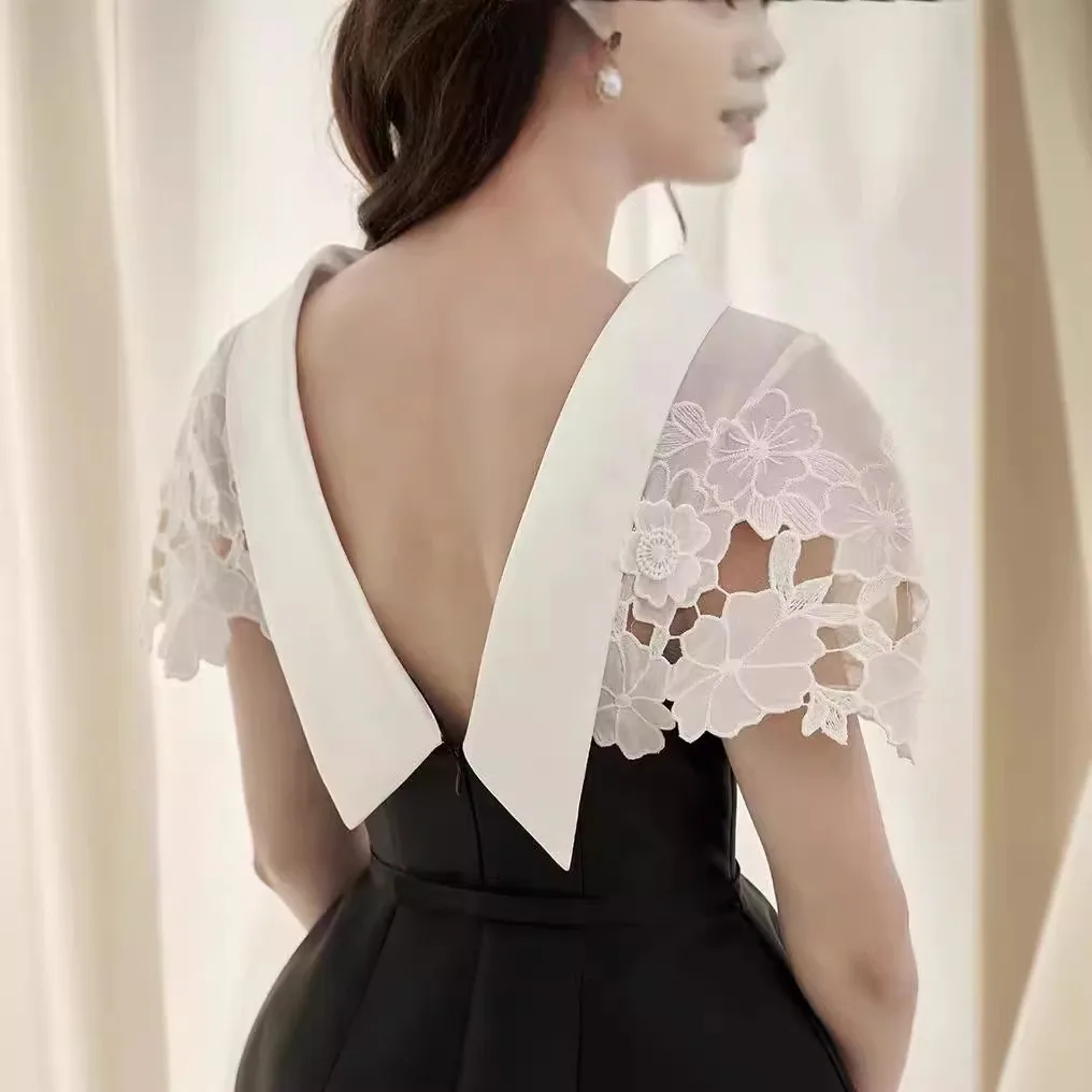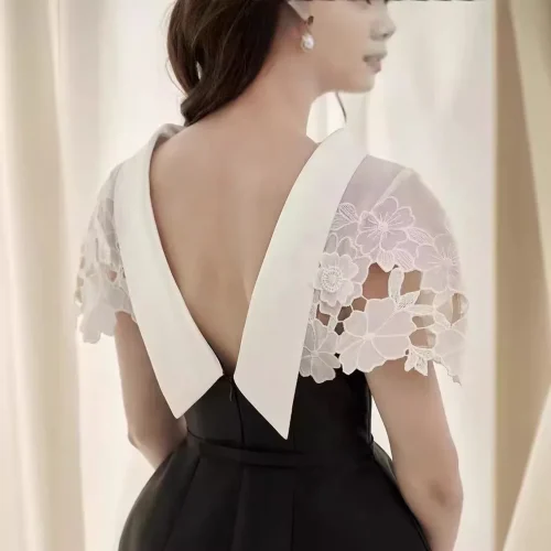 Product Name: 2025 Summer Elegant Slim Long Dress for Women Vintage Lace Patchwork Maxi Dress White Black Vestido Femininos