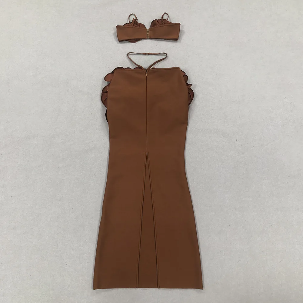 2025 Summer Europe United States New Fashion Sexy High Waist Big Flower Bandage Dress Dress Women’s Split Casual Style