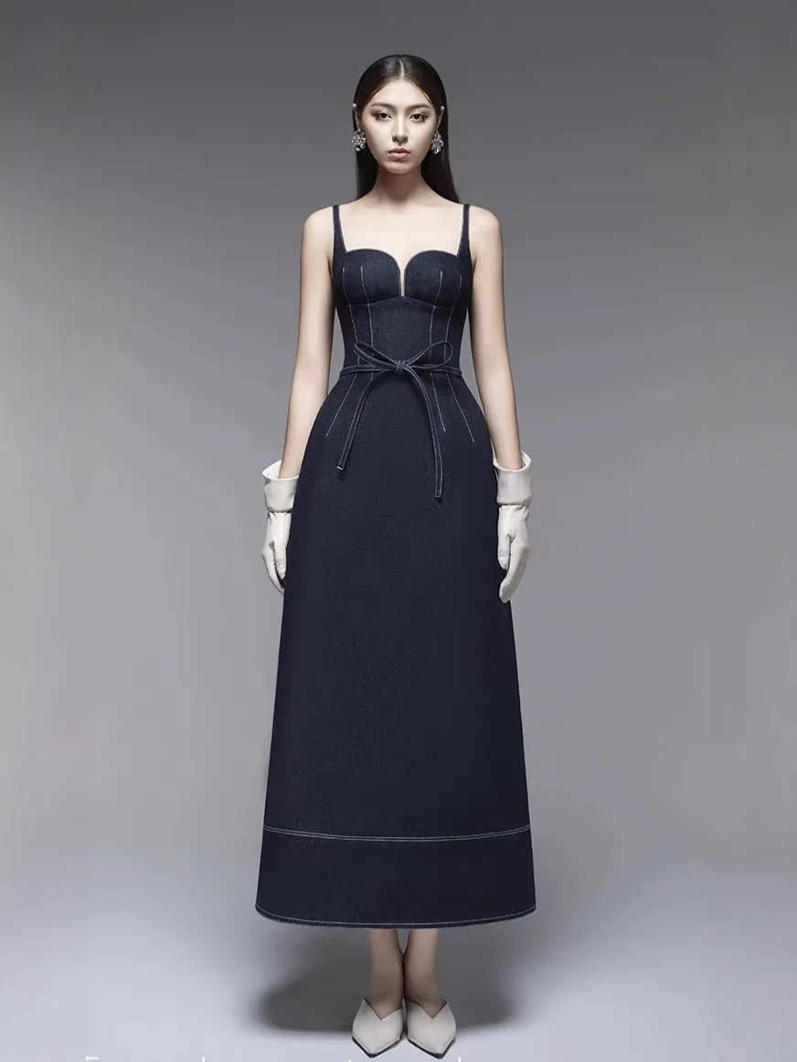 Product Name: 2025 Summer New Fashion Luxury High Waist Halter Women Dress Slim Denim Sexy Elegant Party Long Casual Dress