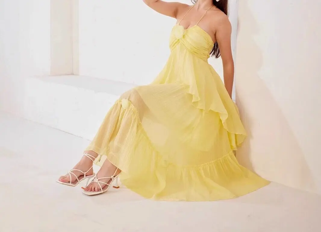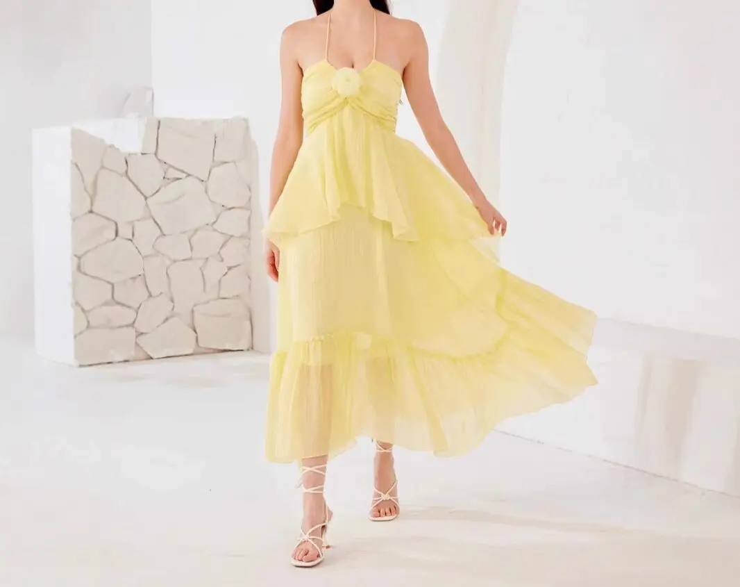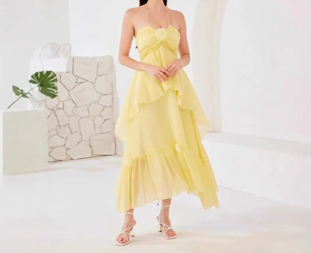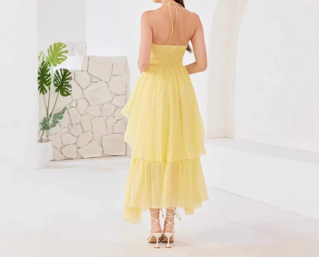 Product Name: 2025 Summer New Holiday Style Sweet Sleeveless Layered Dress Temperament Halter Women Maxi Dress