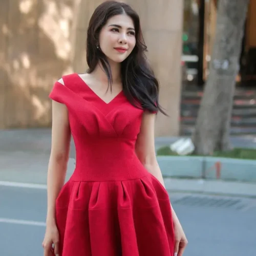 Product Name: 2025 Women’s New V Collar Long Sleeve Slim-fit Tight Waist Red Dress Evening Gown Elegant Evening Dress