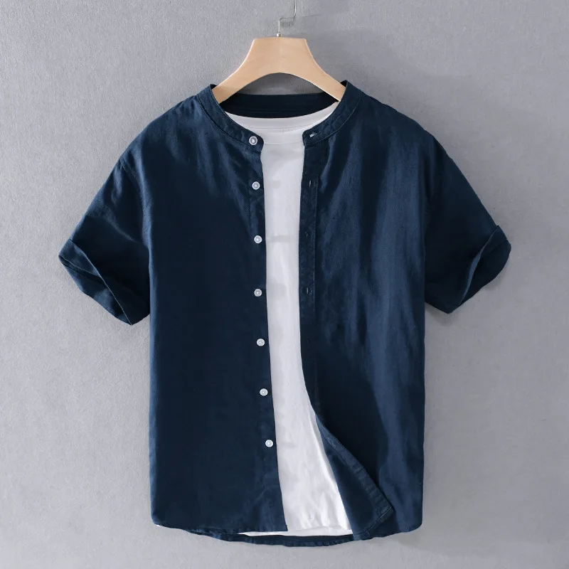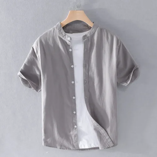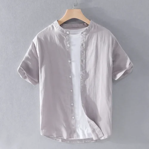 Product Name: 2413-SKAZI-Casual Shirt Mens Short Sleeve Breathable Lux Linen Shirt Beach Wear Linen Shirt for Men