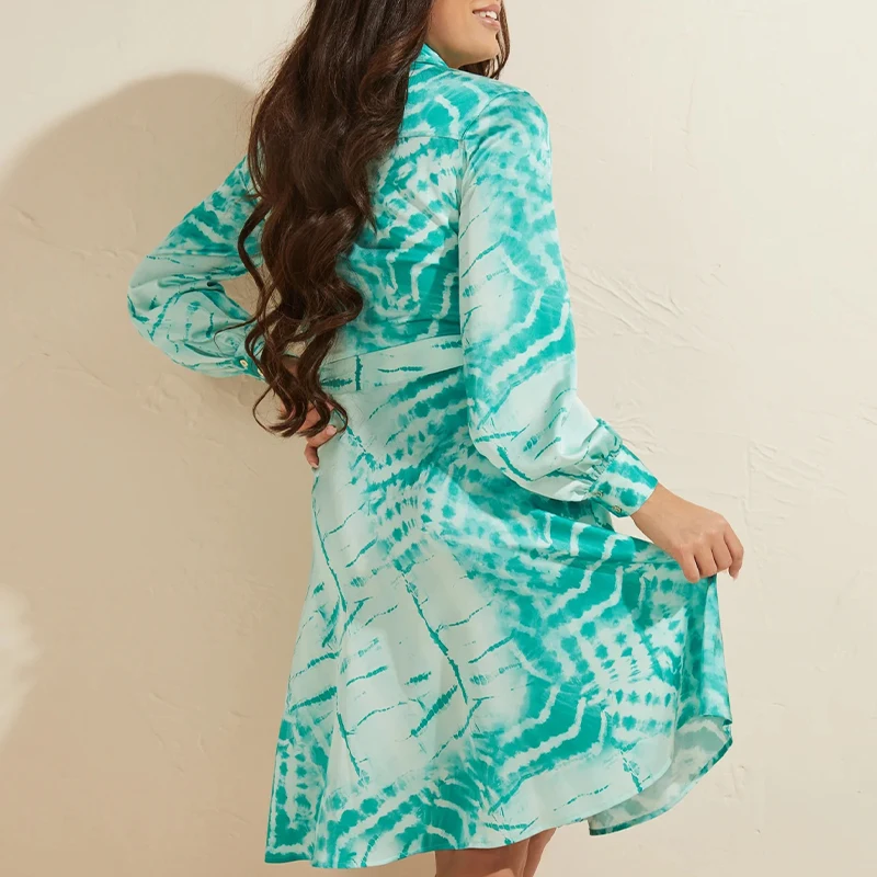 Product Name: 2701-R-Clothing Shirt Dresses Women Casual Batik Dress Women Long Sleeves Mini Dress