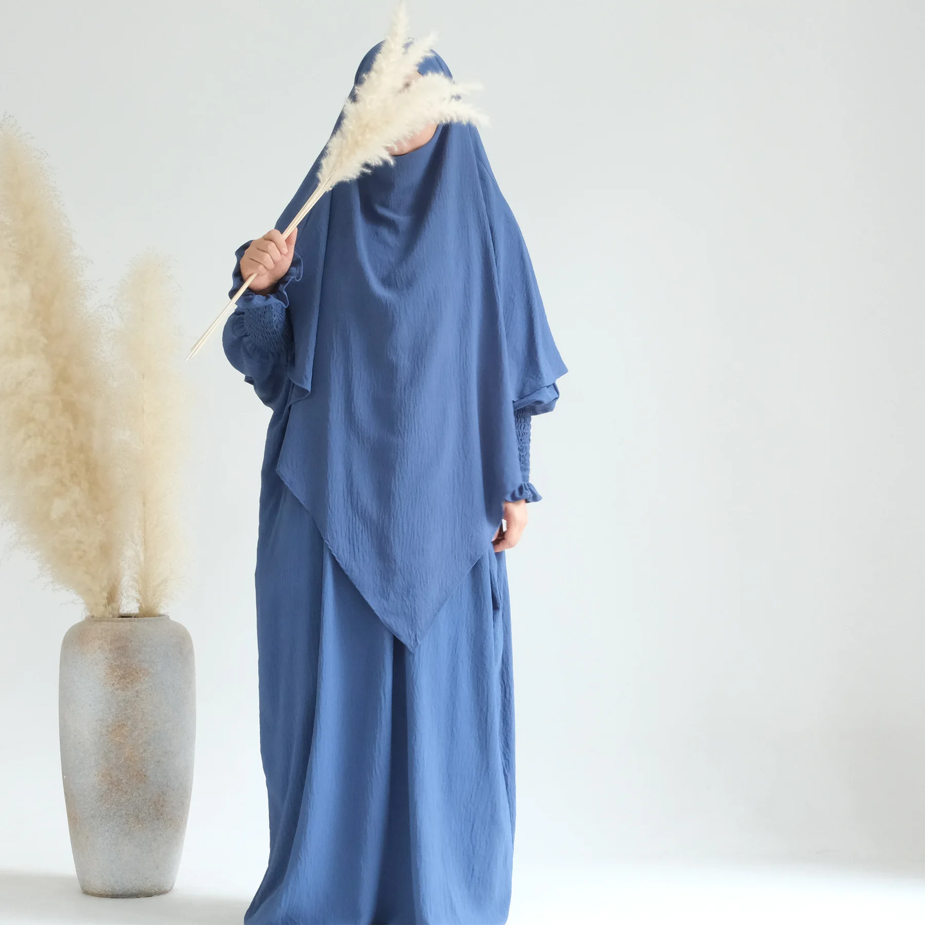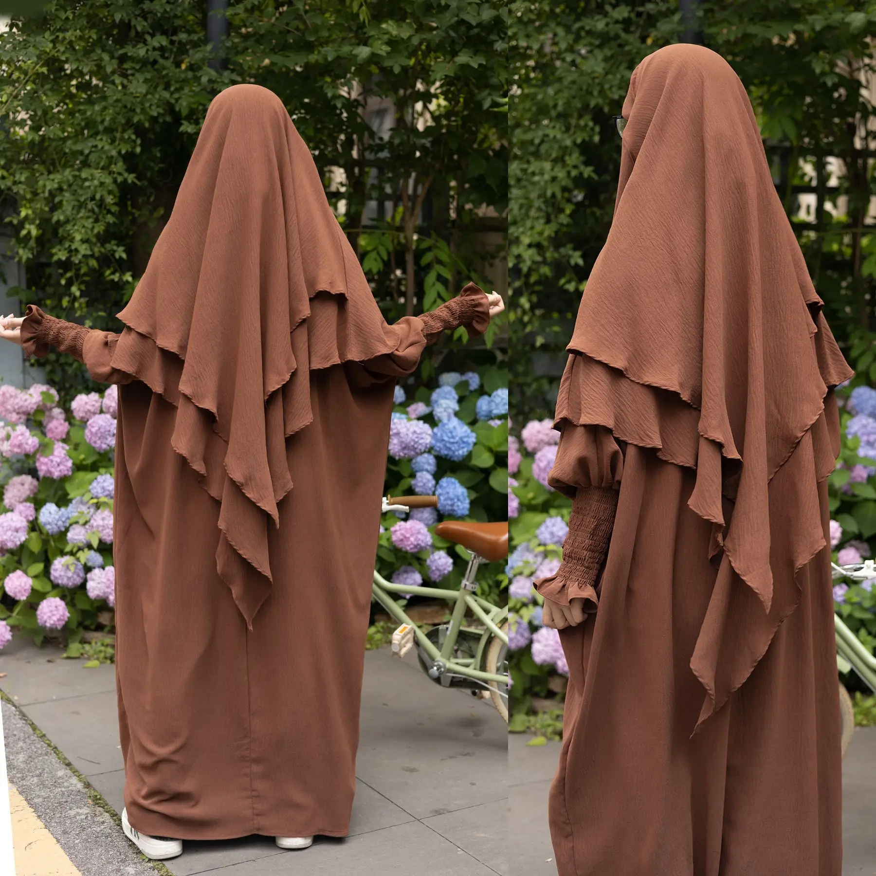 281 Two Layer 16 Colors Khimar Jilbab Set 2 Pieces Remandan Prayer Dress for Women Abaya Khimar Jilbab Set