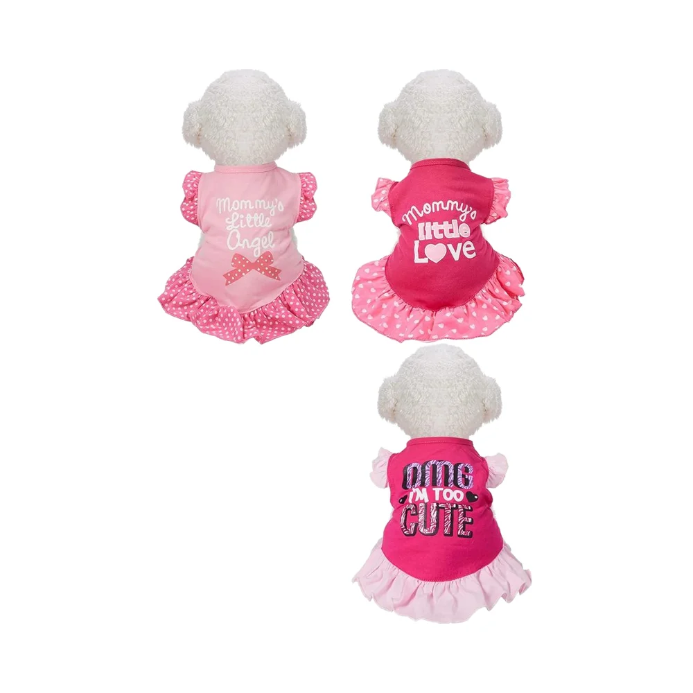 4 Pieces Cute Dog Sundress Printed Princess Puppy Summer Apparel Clothes with Ruffles XS Size for Small Cats and Puppies