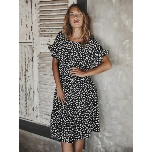 Product Name: 5863-XUJO- Dress Women Casual Dresses Lotus Sleeve Polka Dot Women Ladies Summer