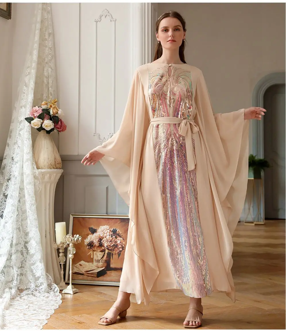 Product Name: 5973-XUJO-Beaded Dress Women Islamic Clothing Traditional Muslim Clothing Accessories Sets for Women Two Pieces Long Skirts