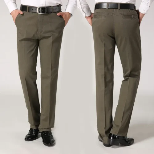 6827-R Classic 100% Cotton Windbreakers Solid Office Wear Casual Dress Chino Pants for Men