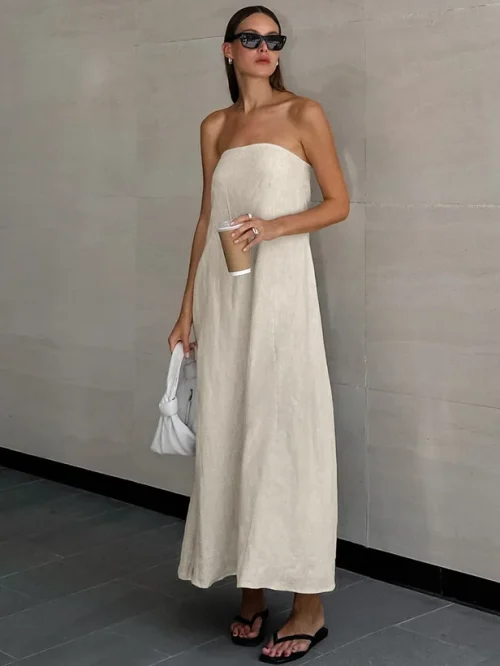 Product Name: 9544-TD-Dress Strapless Invisible Zipper Tube Slip Maxi Dress Vacation Elegant Date Wear