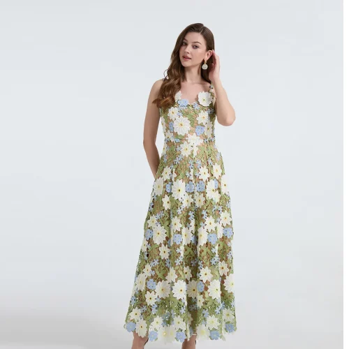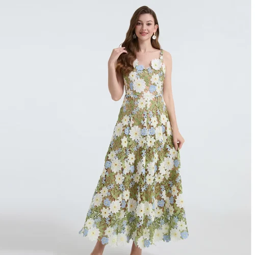 Product Name: AE20250502 Summer A-Line Lace Embroidered Sexy Hollow-Out Large Swing Smart Casual Lady Dress