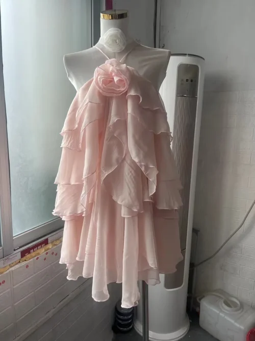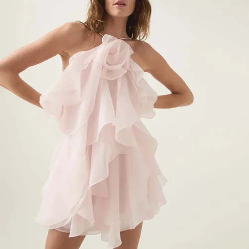 Product Name: AELESEEN 2025 Early Summer Casual Dress Women Sexy Halter 3D Flower Ruffles Design With Strappy Sleeveless High-End Mini Dress