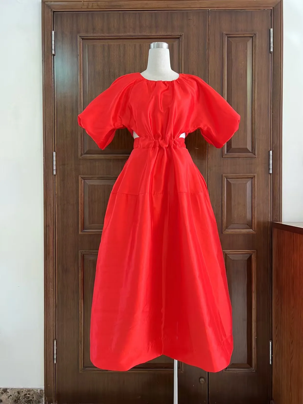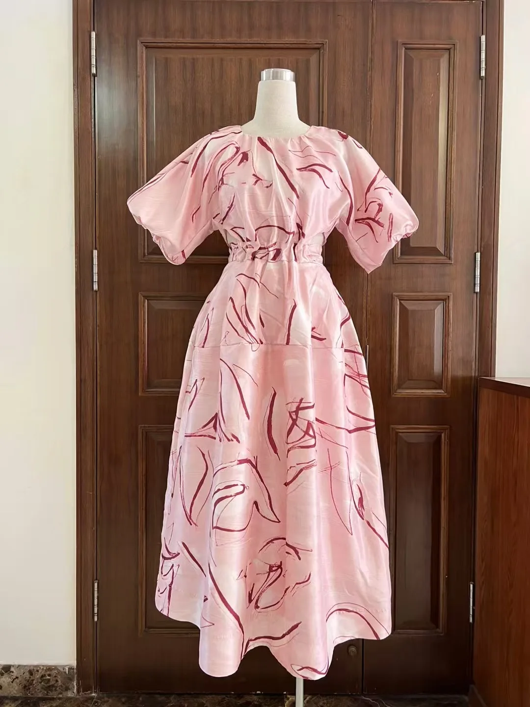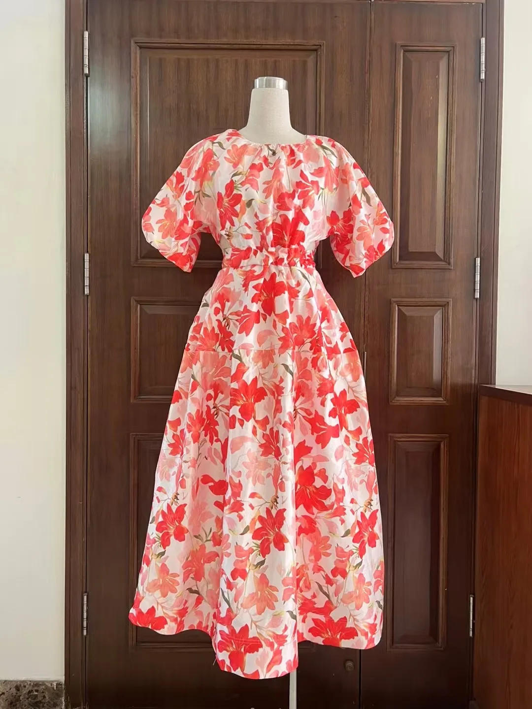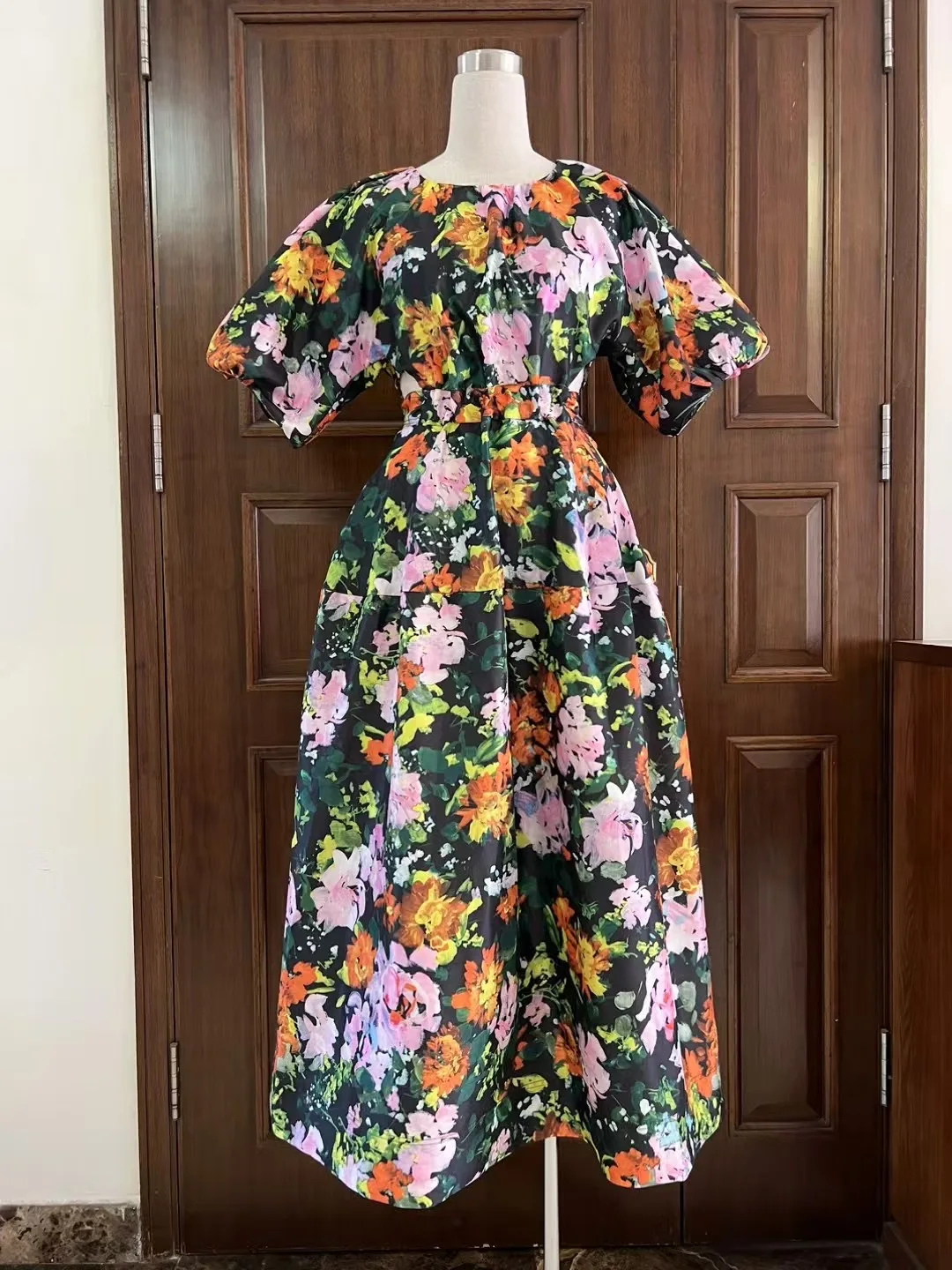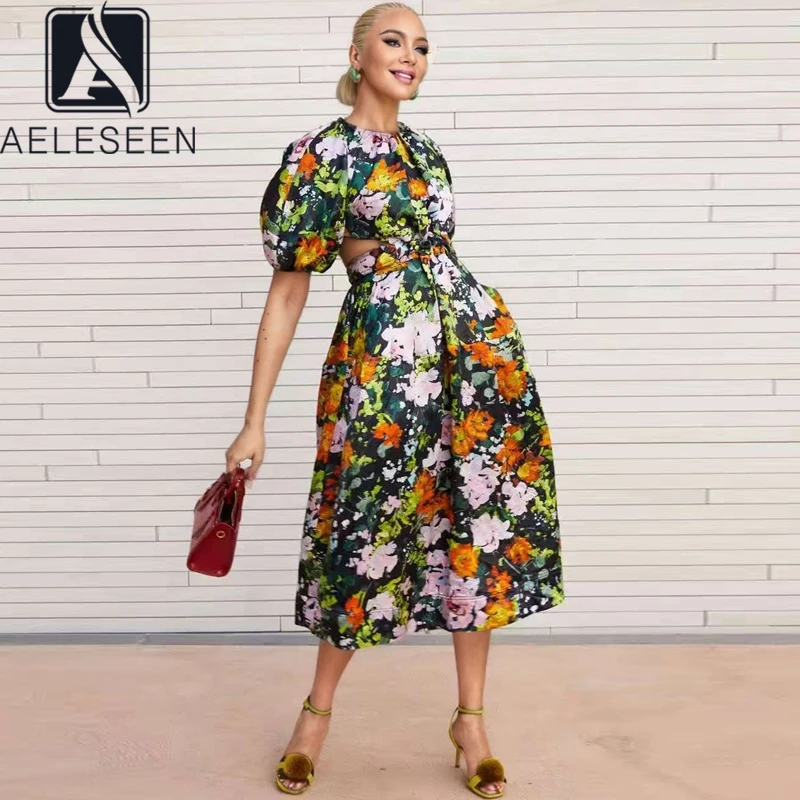 Product Name: AELESEEN Bohemian Summer Casual Dress Women Designer Fashion Puff Sleeve Flower Print Bow Backless High Waist Midi Party