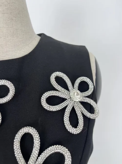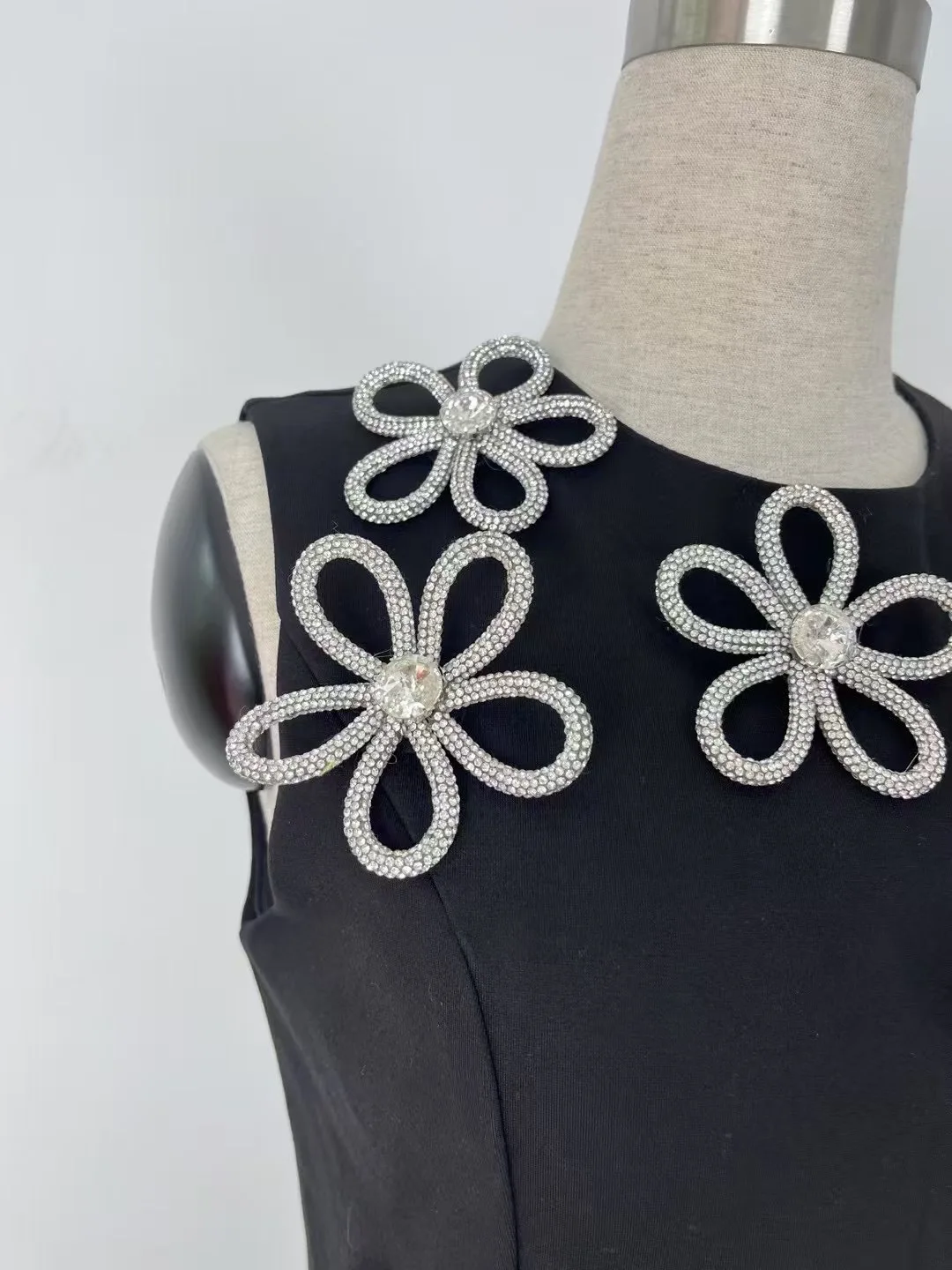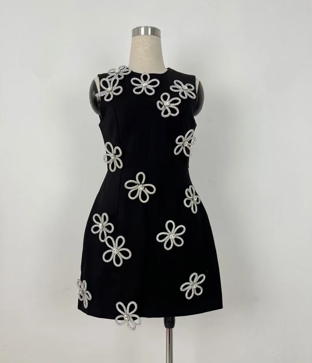 Product Name: AELESEEN Spring Summer Casual Mini Dress Women Design Fashion Sleeveless Diamonds Flower 3D Black White Slim Holiday Vacation