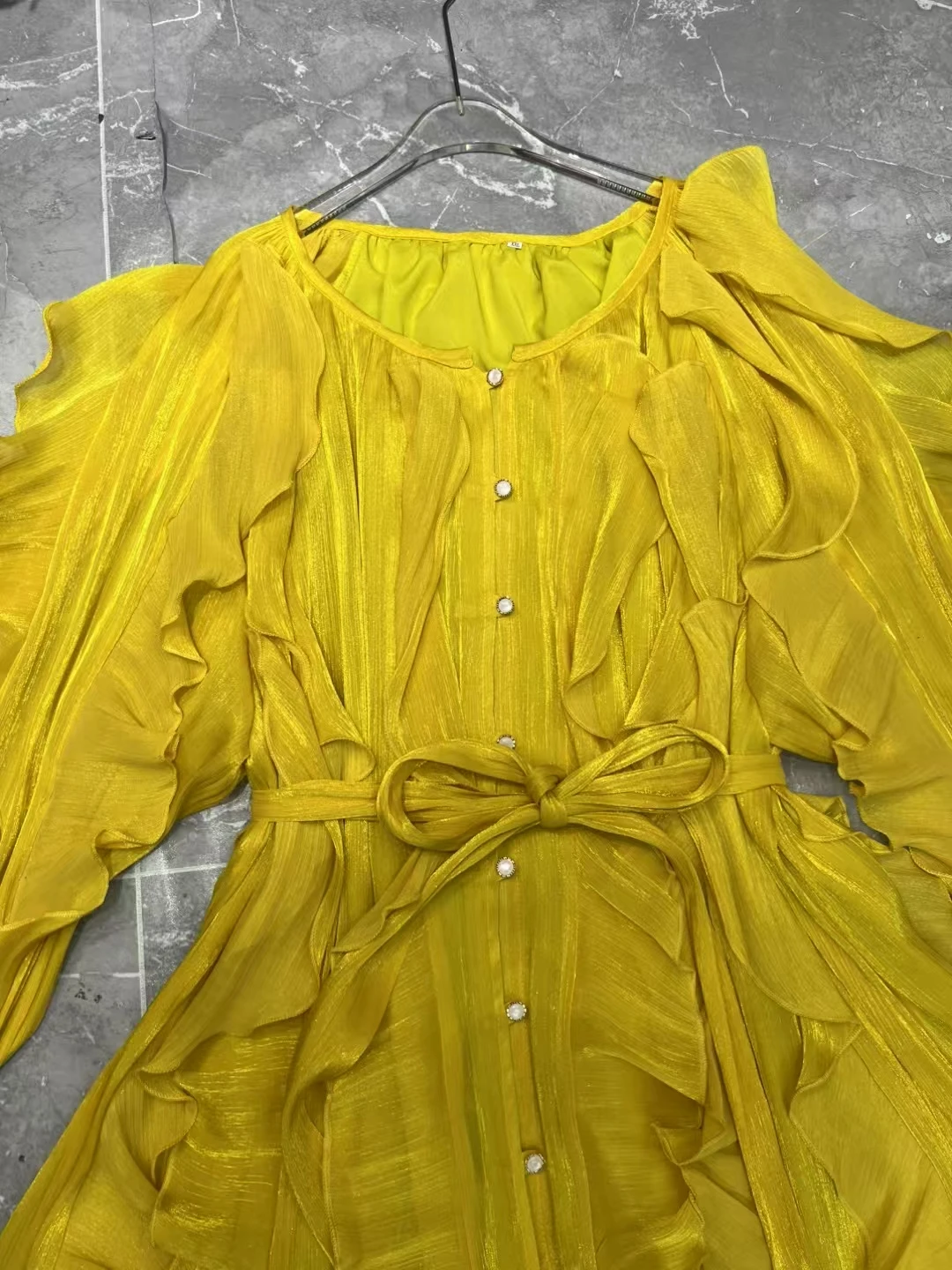 Product Name: AELESEEN Spring Summer New Elegant O-Neck Lantern Sleeve Tie Rope Mini Sun Dress Women’s Solid Color Fold Casual Dresses