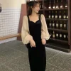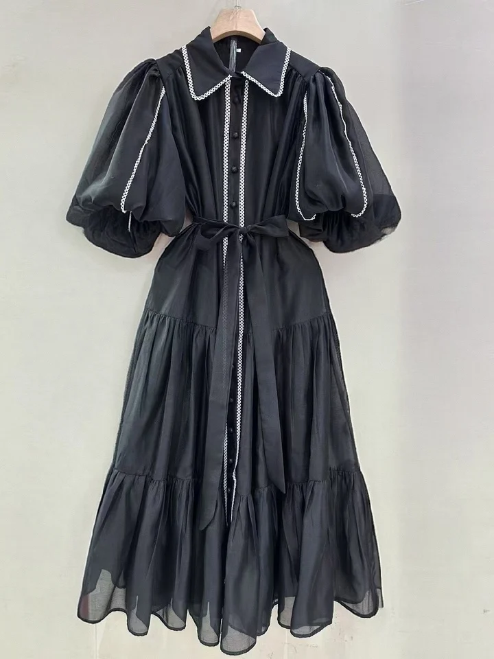 Product Name: AELESEEN Women’s Casual Midi Dress for Spring Summer Vintage Retro Party Fashion Design Lace Patchwork Puff Natural Loose