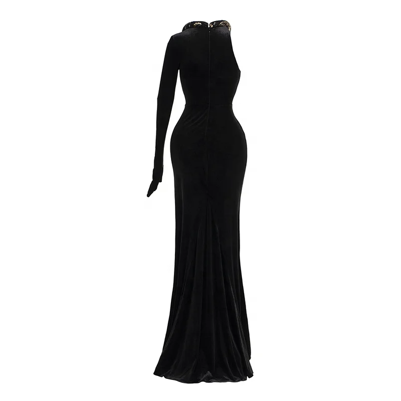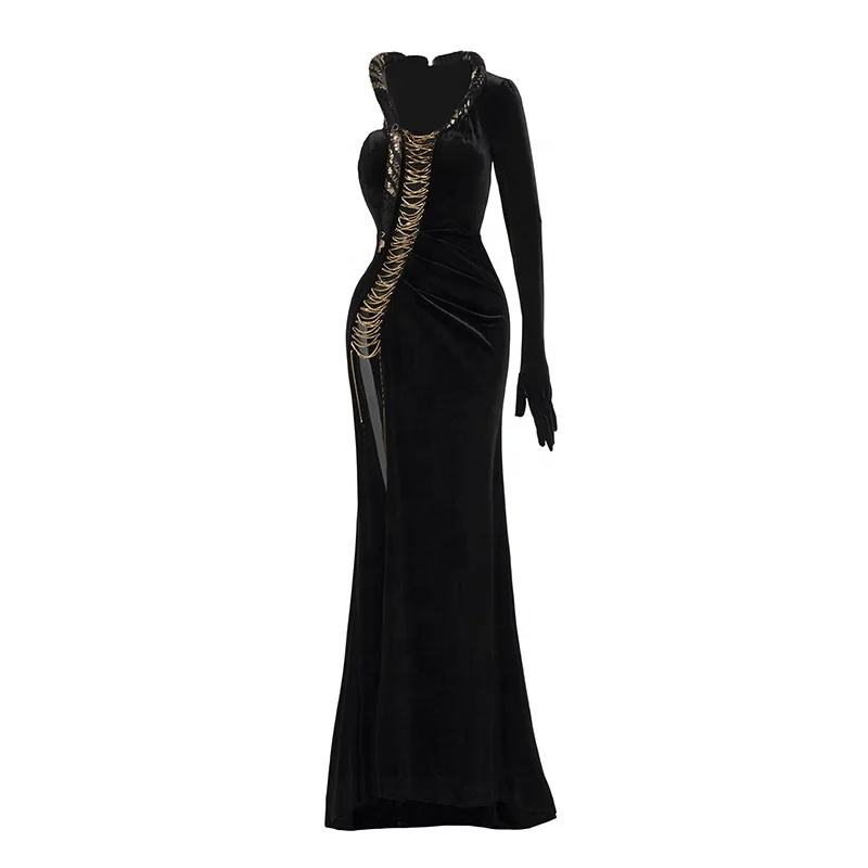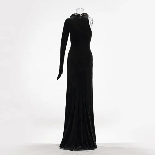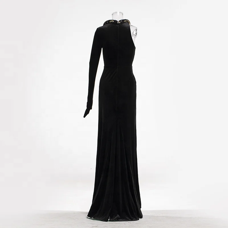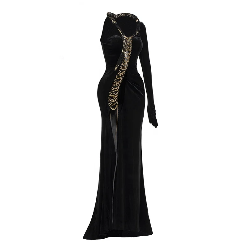 Product Name: Aristocratic Premium One Shoulder Long Sequins Beaded High Split Dress Asymmetric Club Formal Prom Cocktail Trendy Evening Gowns