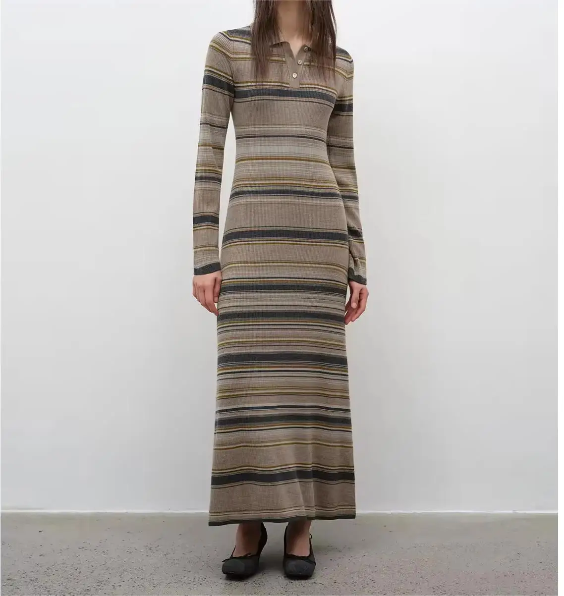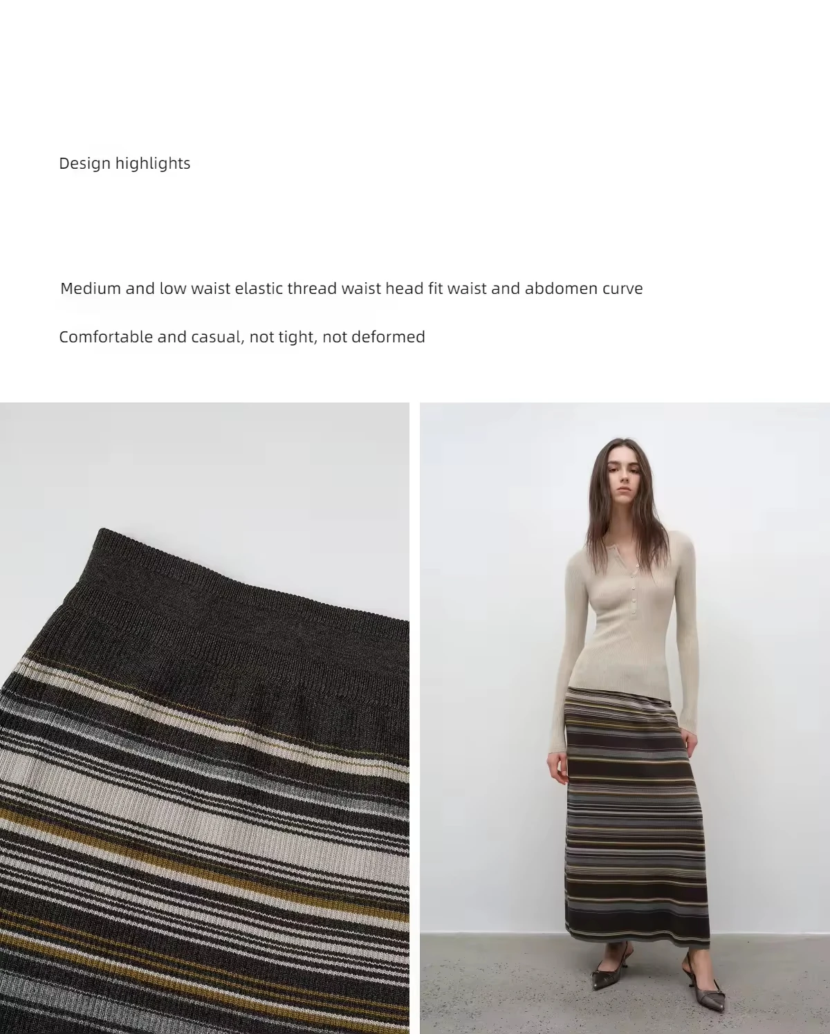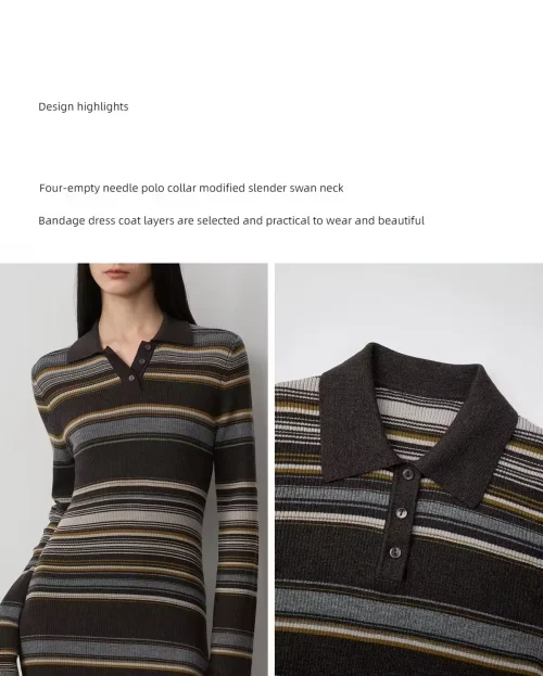 Product Name: Autumn Casual Women’s 100% Merino Wool Three-Piece Set Woven Polo Collar Long Striped Top Lady’s Three-Piece Sets 3 Pieces
