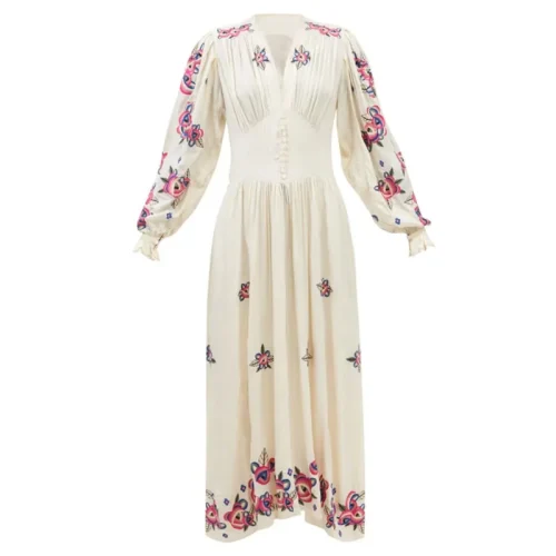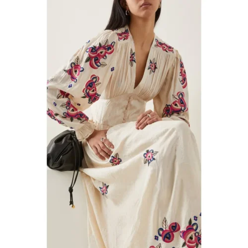 Product Name: Autumn Special-Interest Fashion Brand Flower Embroidered V-neck Waist-Tight Bohemian Vacation Style Long Dress