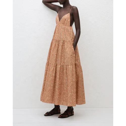 Product Name: BAOLA Price Women Triangle Tiered Sundress Side Pockets Organic Cotton Poplin Floral Printing Maxi Summer Dress