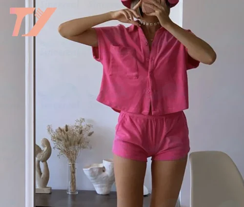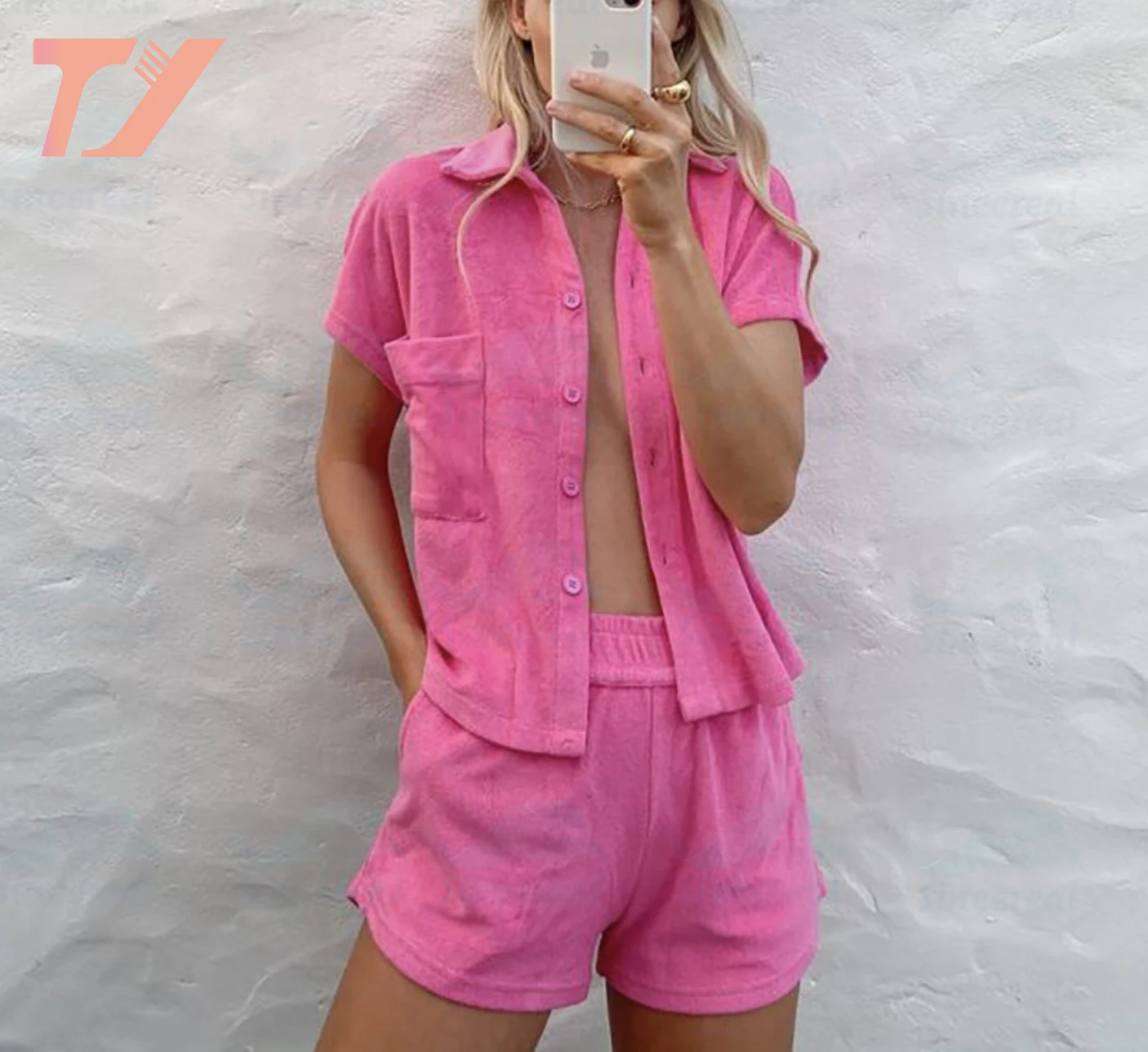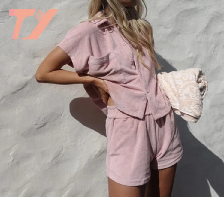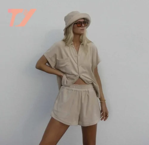 Product Name: Beach Women Fashion Summer Terry Sets Shirt and Shorts Set Summer Women 2 Piece Shorts Set Clothing