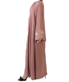Best Quality Everyday Pink Islamic Set with Subtle Pleats and Round Neck Long Casual Wear Dress That Moves With You from India