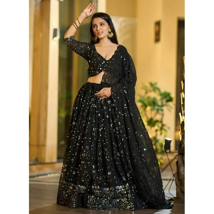 Black Georgette Evening Dress Sequins Work Party Wear Lehenga Choli