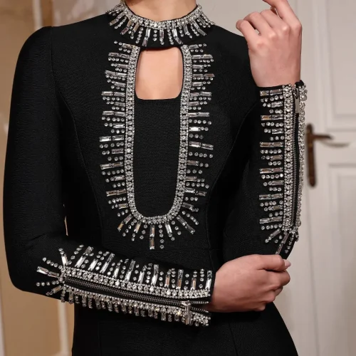 Product Name: Black Long Sleeve Slim Fit Heavy Duty Beaded Women’s Evening Cocktail Dresses Gala Party Elegant