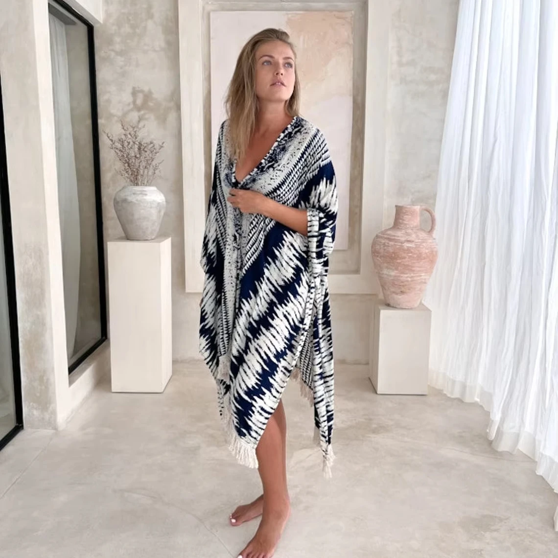 Bohemian Style Floral-Printed Silk Maxi Dress Summer Indian Beach Wear Ladies’ Fashion Slit Long Beach Style Dress Striped 1
