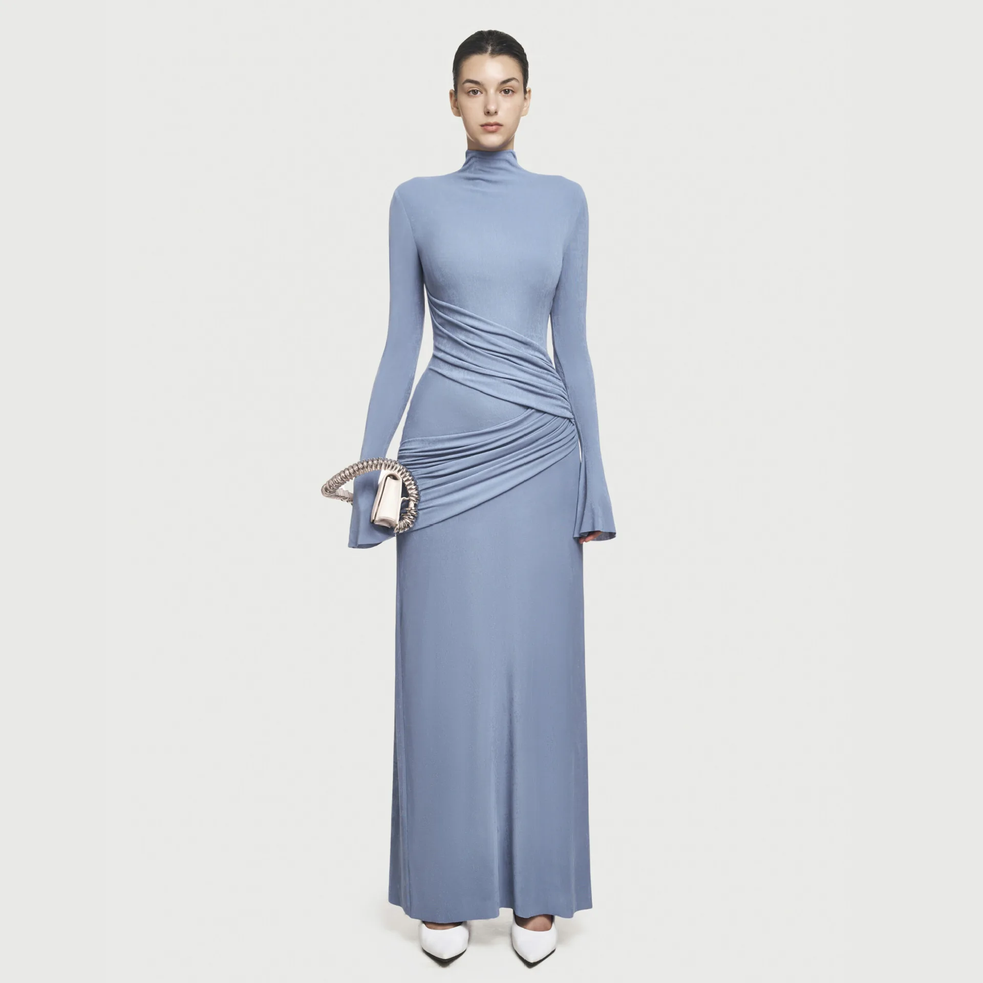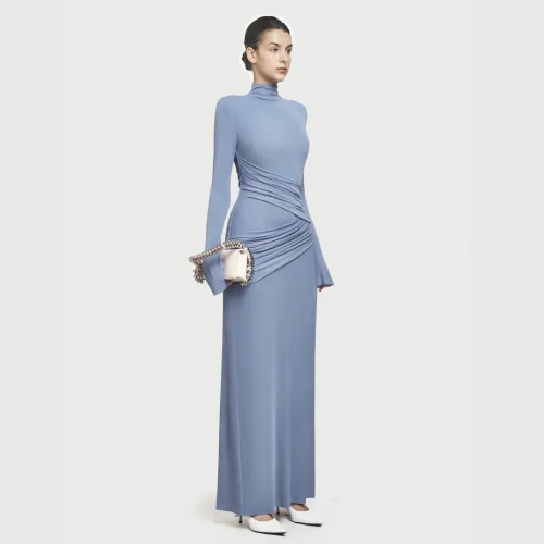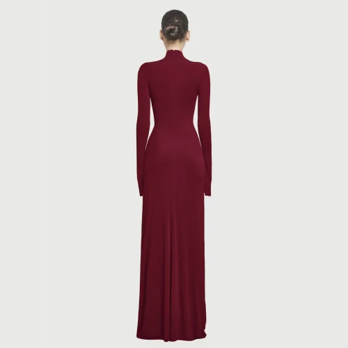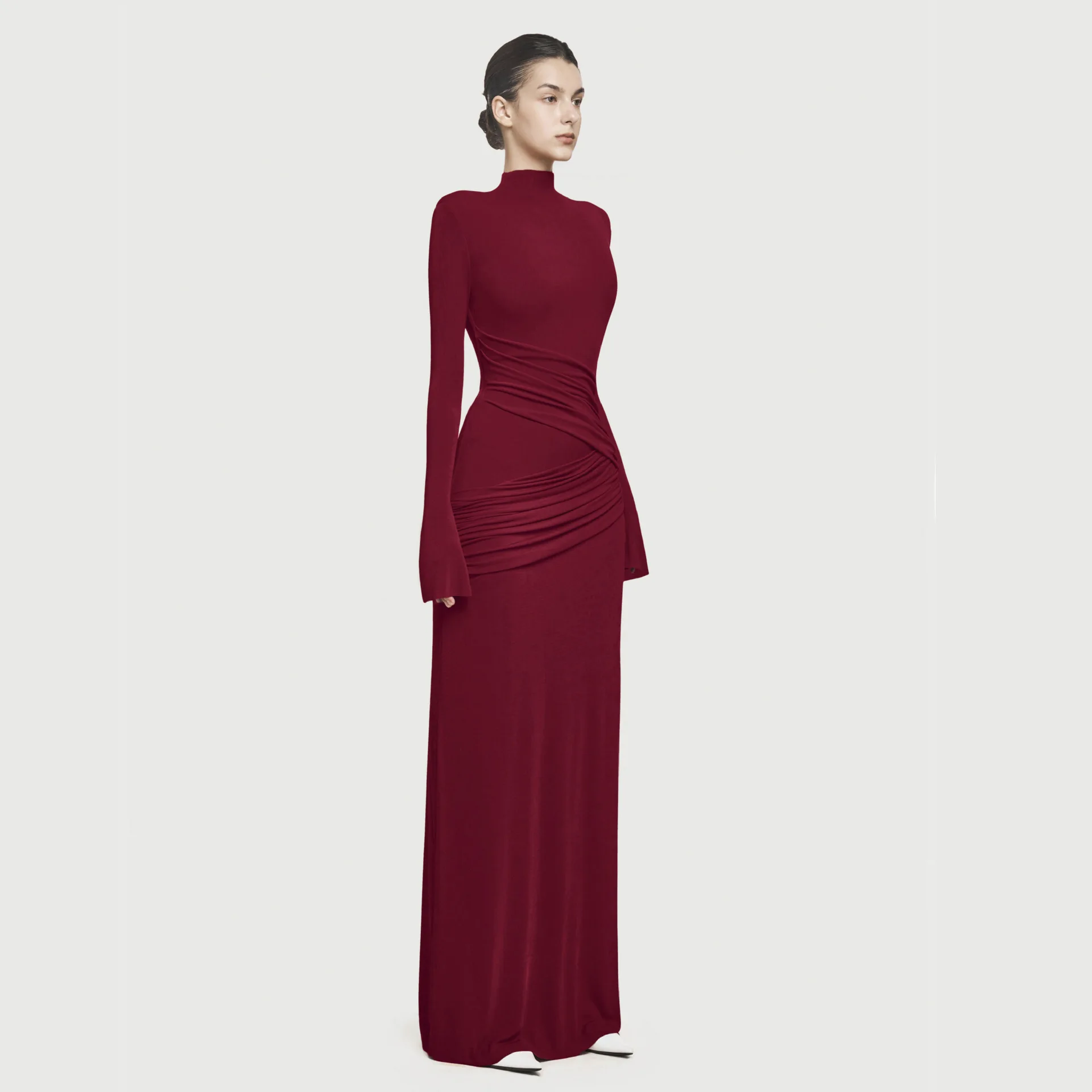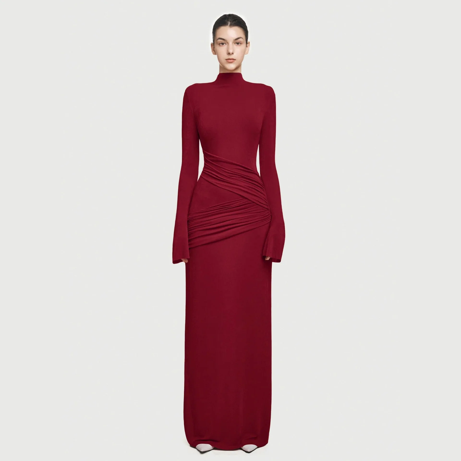 Boutique 2025 High Quality Elegant Red Evening Dress Slim Pleated Round Neck Long Elegant Dress