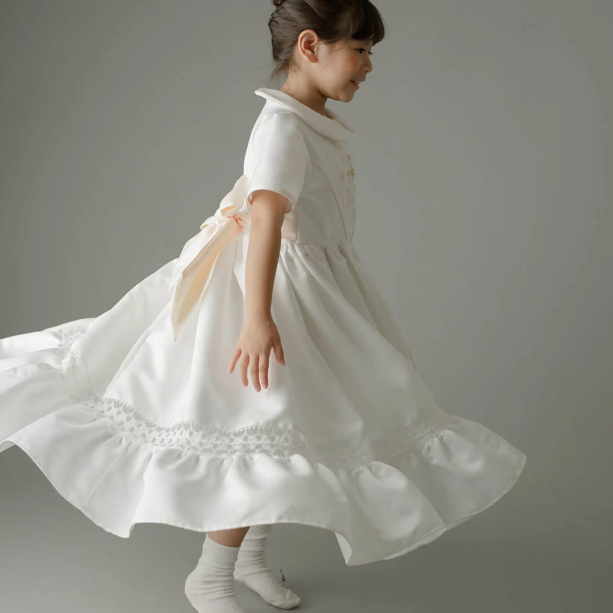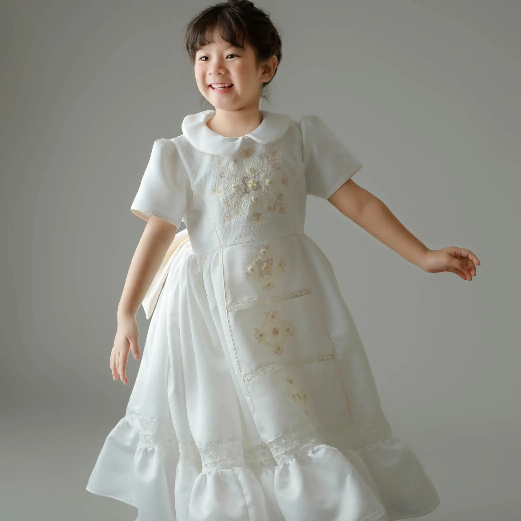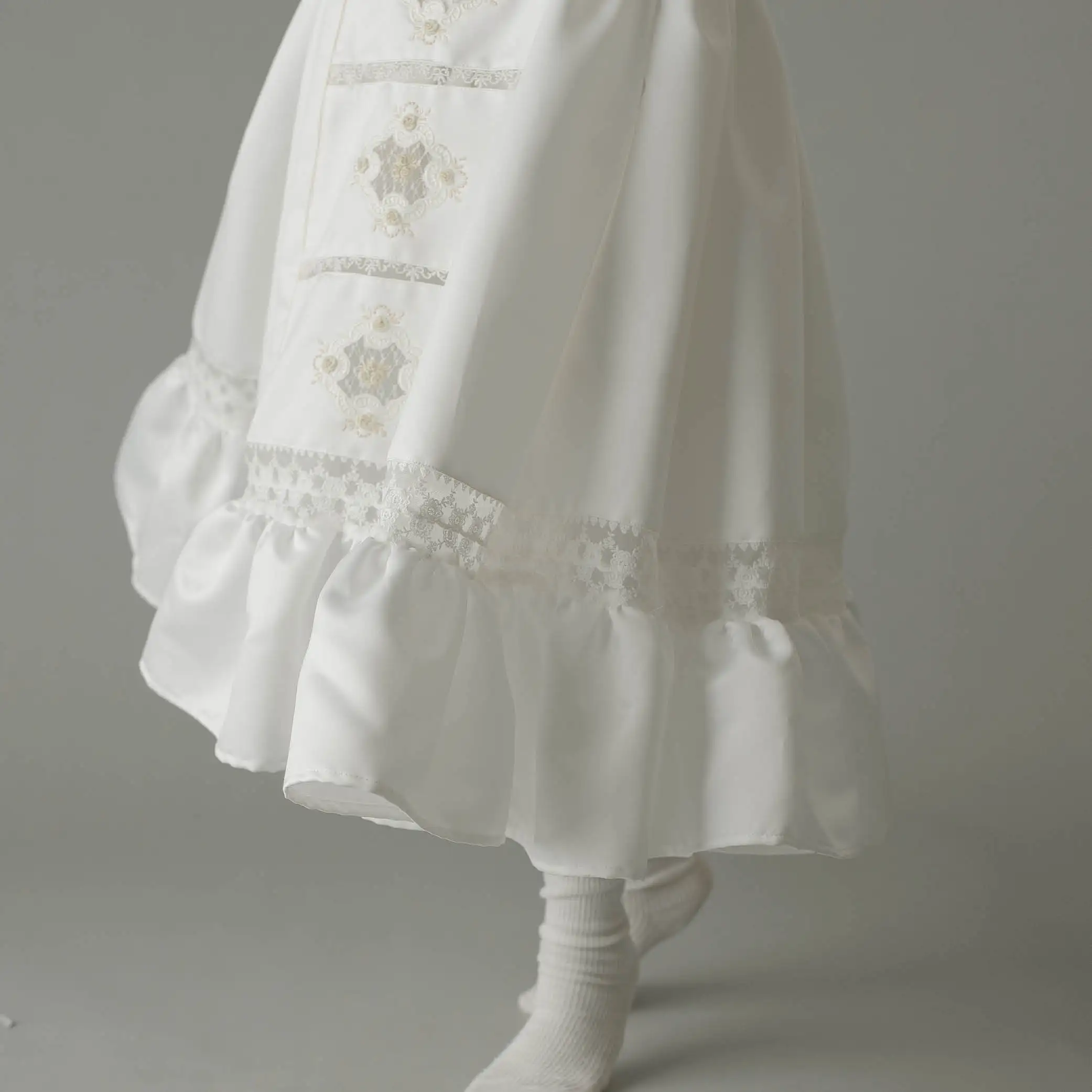 Boutique Hand Embroidery High Quality Design Connect Lace Vintage Spring Children Dress White Princess Ball Gown Evening – Alana
