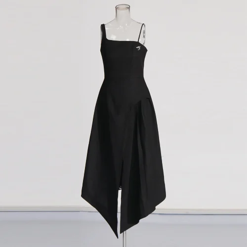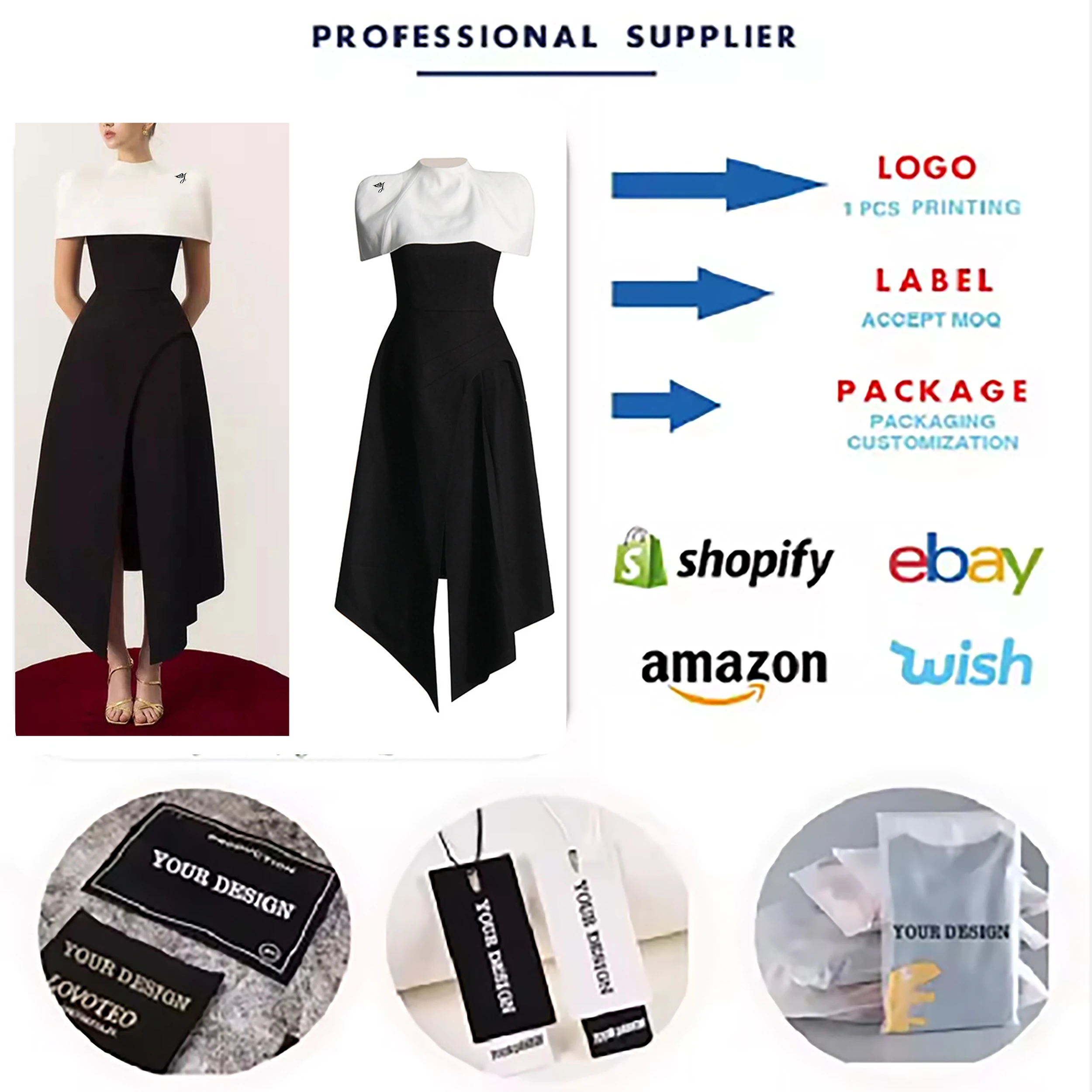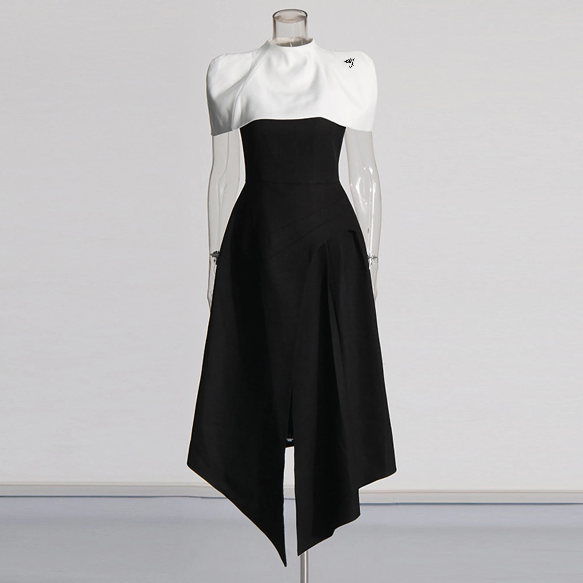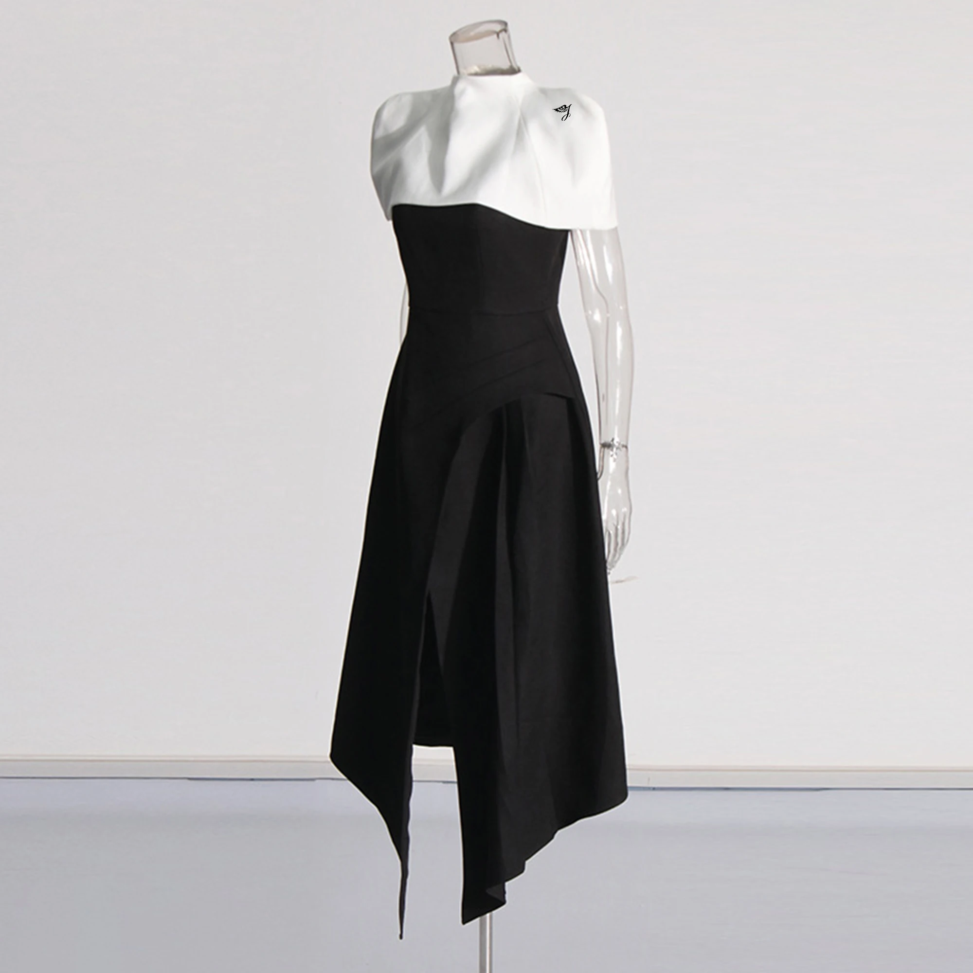 Product Name: Brand ization Summer New Style Elegant Fashionable Long Party Dress for Women Black White Contrasting Colors Detachable