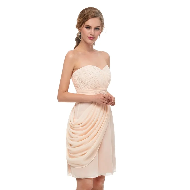 Product Name: Bridesmaid Dresses 2023 Sweetheart Champagne Chiffon Pleated Short Bridesmaid Dresses