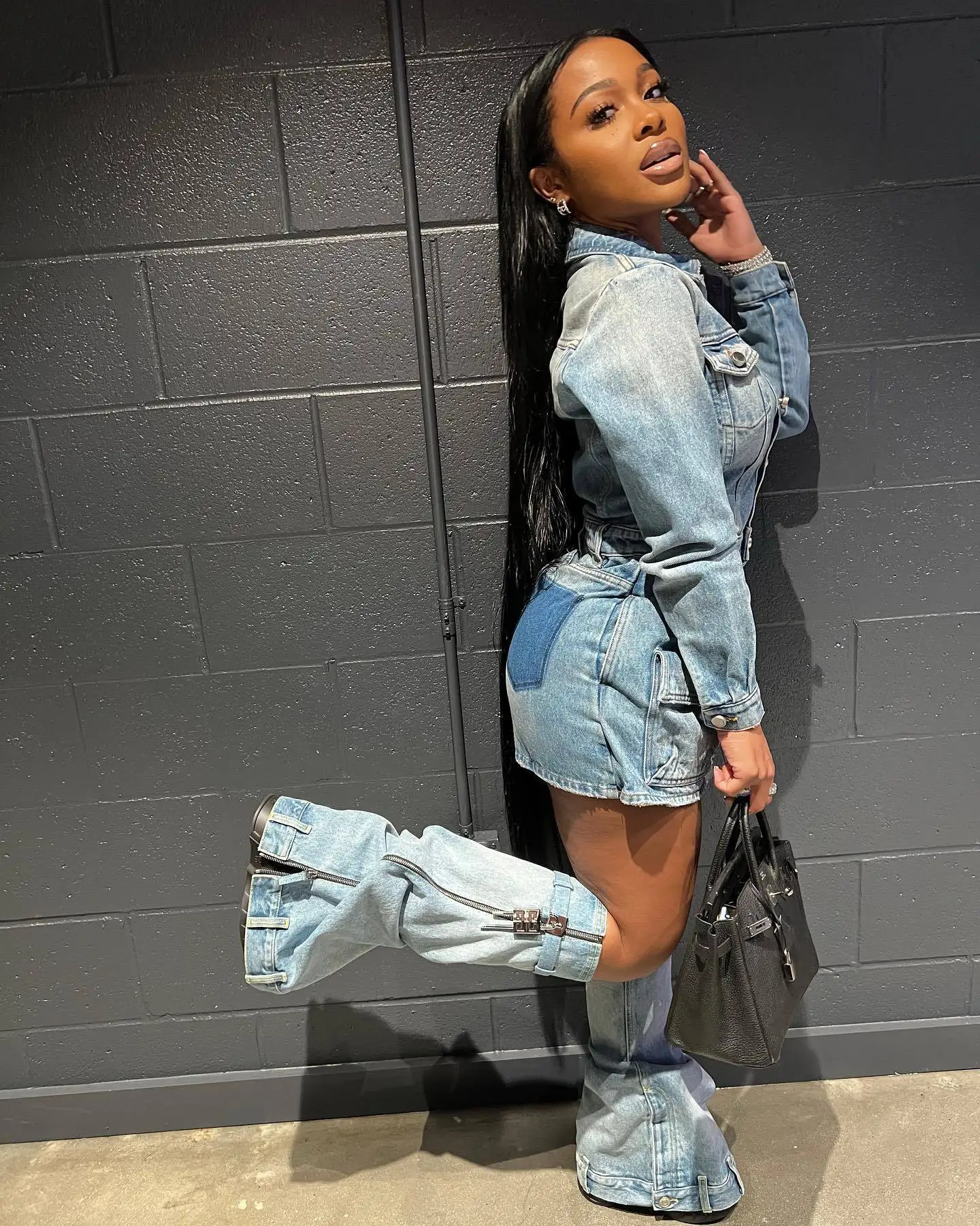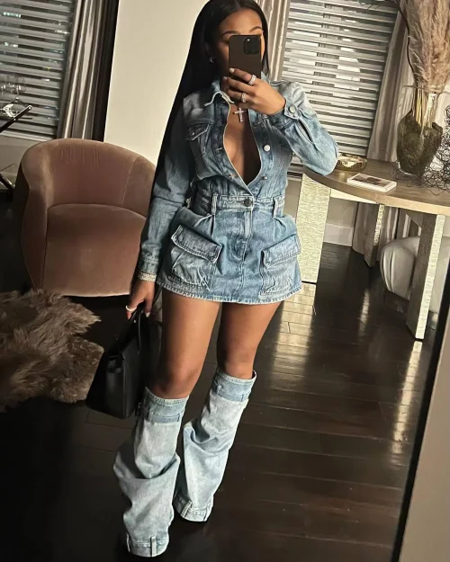 Product Name: C1605 High Quality Autumn Sexy Pockets Washed Denim Dress With Leg Covers