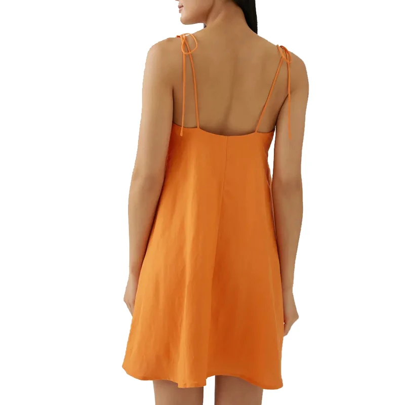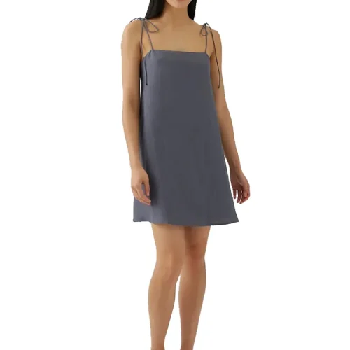 Product Name: Casual 100% Cotton Padded Linen Tie Shoulder Dress Women’s Summer Linen Sundress Plain A-Line Dress