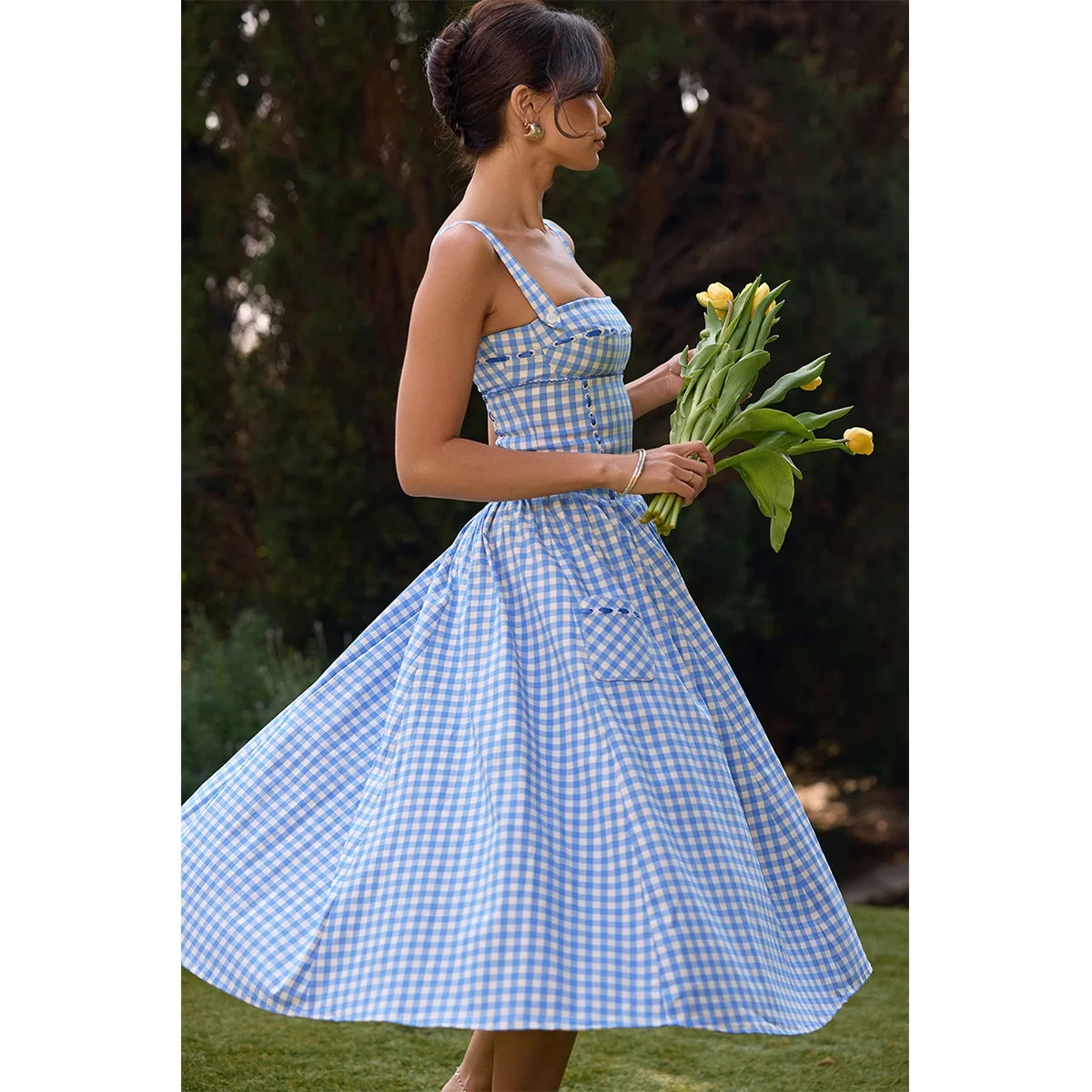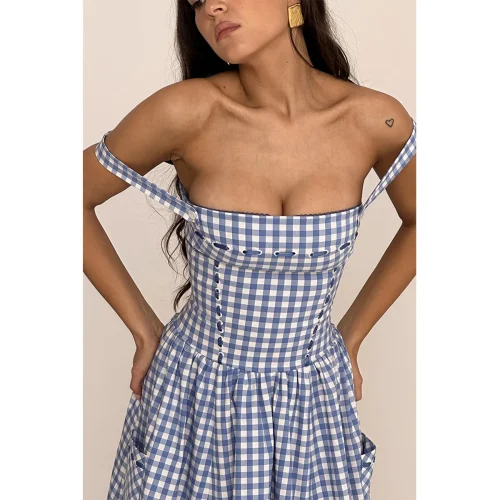 Product Name: Casual Dresses Women’s Clothing Elegant Casual Pocketed Sleeveless Plaid Midi Sundress