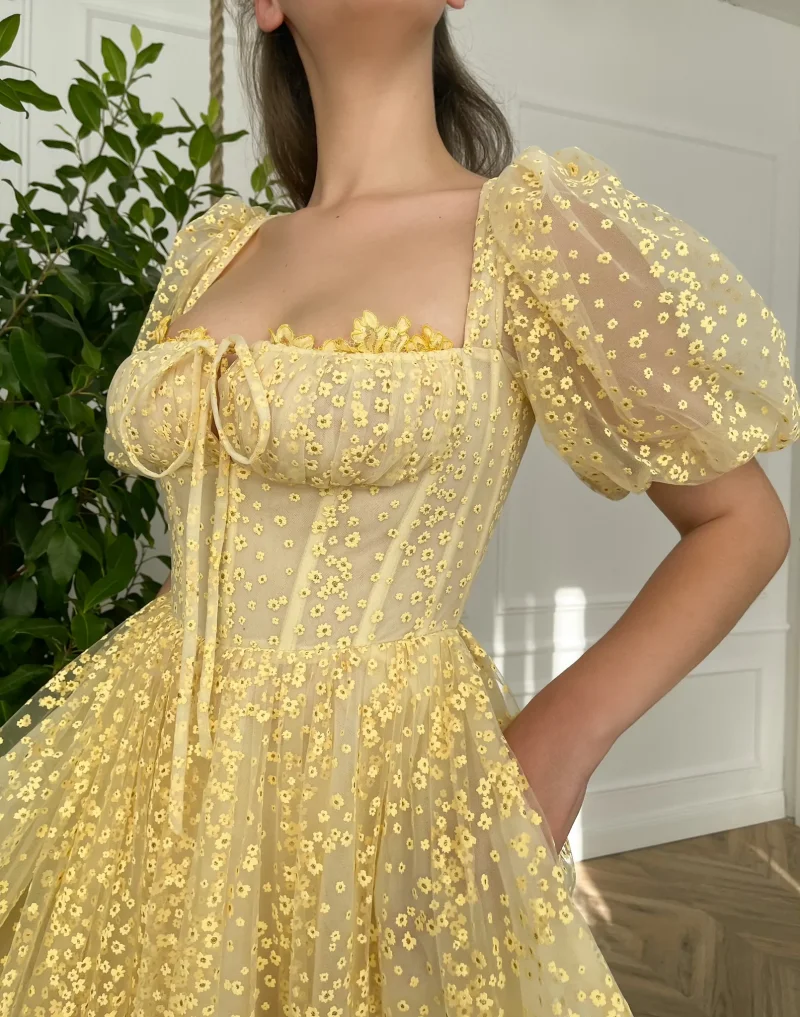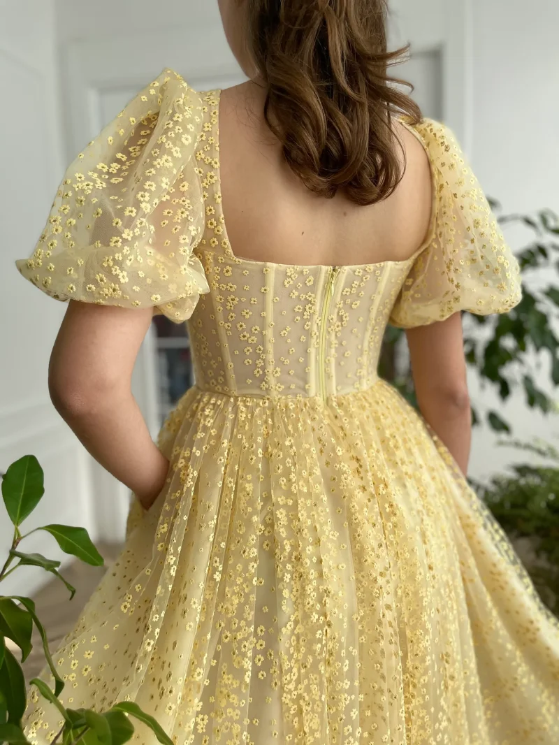 Product Name: Casual Flowers Puffy Sleeves A-line Engagement Wedding Gown Birthday Party Dress Plus Size Women Prom Evening Dresses